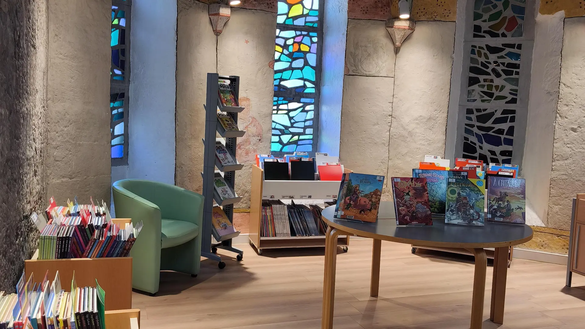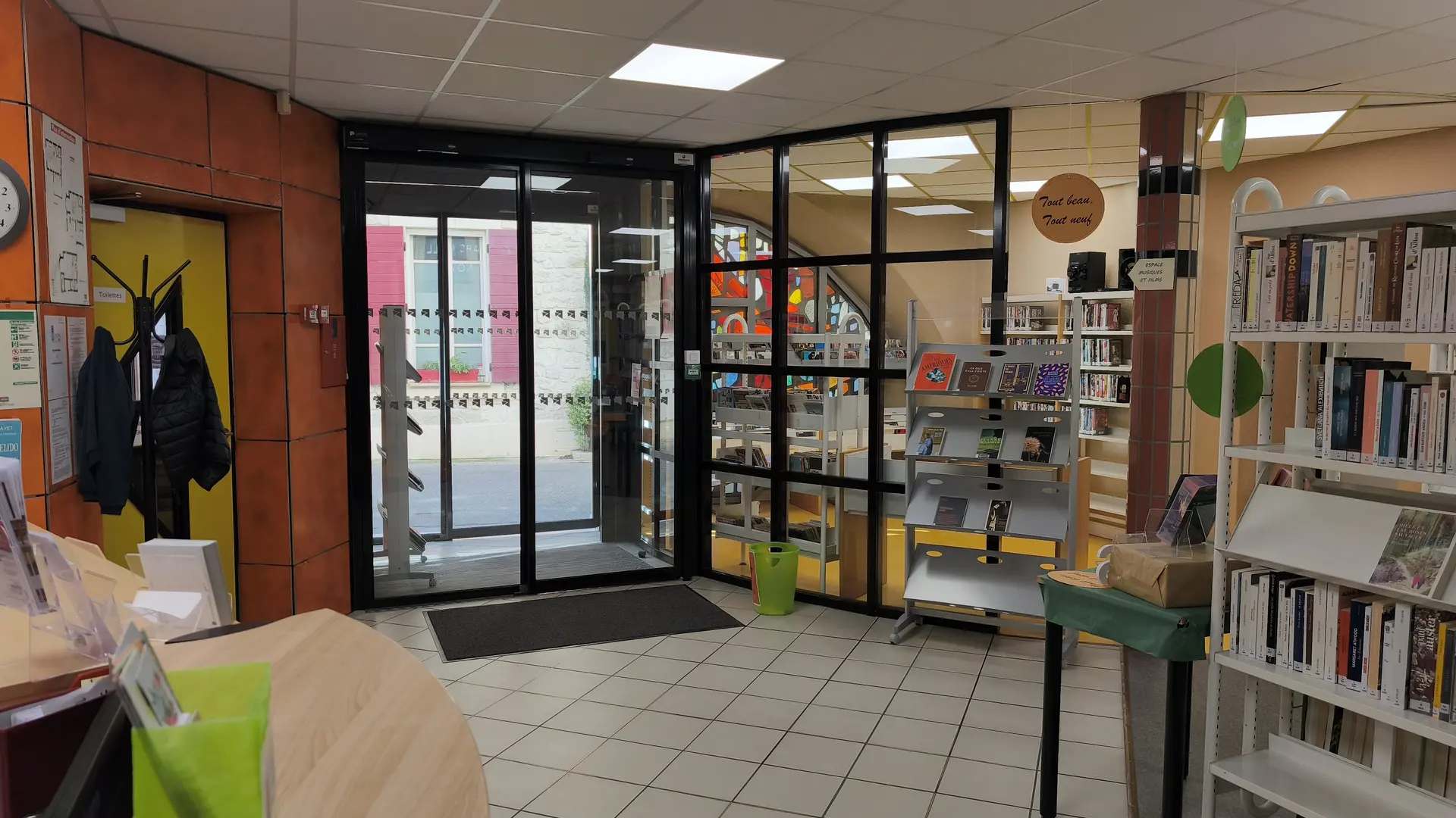 Pour une inscription de 5€ et un chèque de caution, vous pourrez trouver un grand nombre de documents pour vous distraire et vous évader, emprunter des DVD pour occuper les enfants ainsi que des livres à leur lire. Possibilité également de se connecter sur Internet.