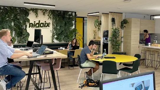 Au Nidaix, vous pouvez louer un bureau de 10 à 20m² dans un environnement créé pour maximiser votre bien-être au travail et votre productivité. Vous rejoignez une communauté d’entrepreneurs dynamiques et de coworkers dans un bâtiment de 1500 m². C’est au R+1 du Nidaix qu’auront lieu des événements professionnels (formations, conférences, masterclass...) et conviviaux (afterworks, concours...).