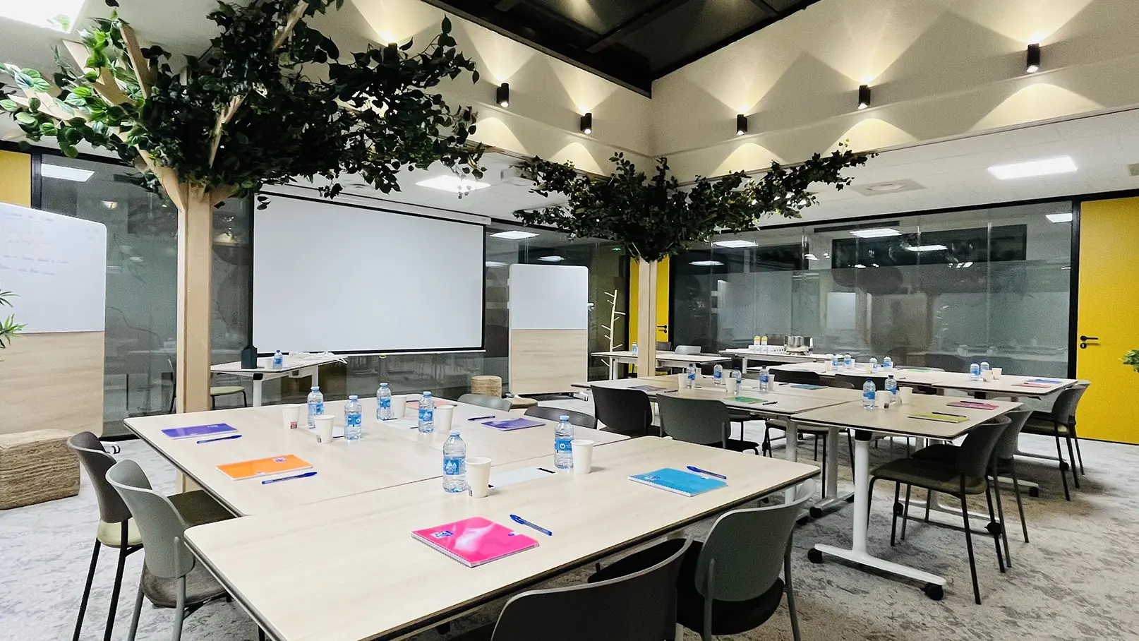 Mais ce n’est pas tout ! Nidaix, c’est aussi une terrasse de 210 m² en rooftop, des salles de réunion avec des utilisations professionnelles diverses (visioconférence, créativité…), un espace jeu et sport et un environnement inspirant et stimulant pour booster votre productivité.