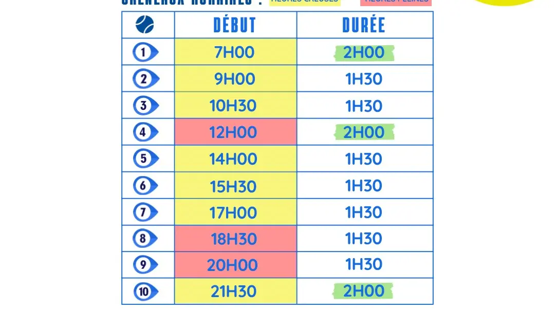 7 terrains (6 standards + 1 single) hauteur sous-plafond 12M , pour des conditions de jeux parfaites, toute l’année et par tous les temps !