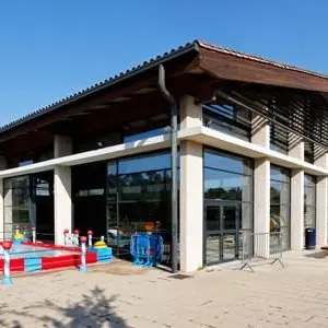 Bassin intérieur de 25m avec 5 couloirs. Couvert avec baies vitrées donnant sur une pelouse. Pataugeoire extérieure, pentagliss extérieur de 5 pistes, distributeur automatique d'articles de bain, de boissons chaudes / froides et de friandises.