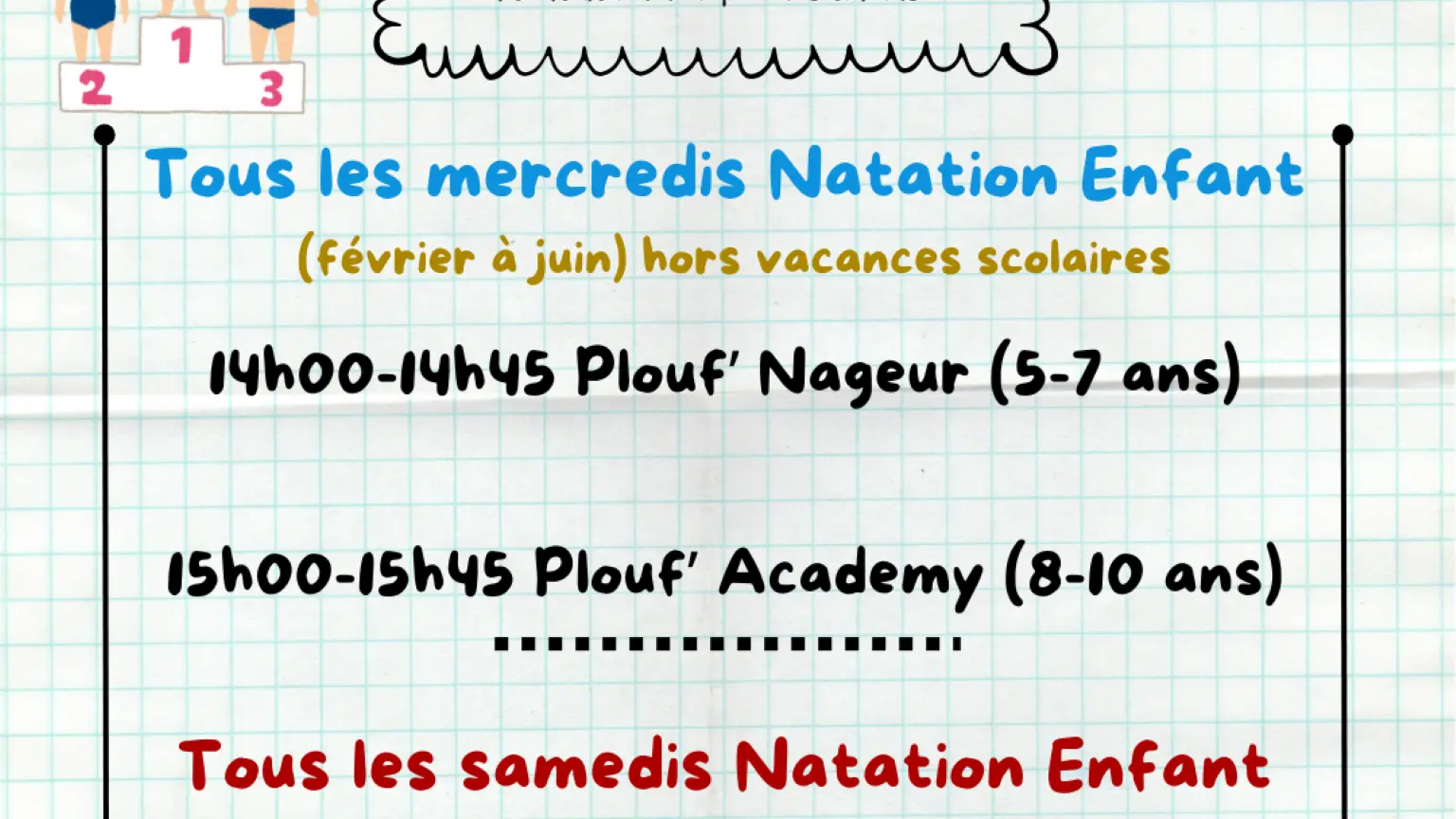 Activités d'été : stage natation enfants initiation & perfectionnement, cours de gym aquatique (voir site colmiane.com).