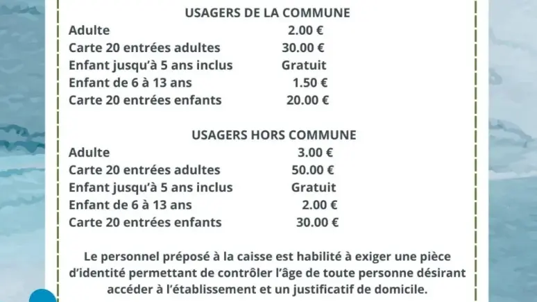 Enfants de 6 à 13 ans : 1,50€ (carte de 20 entrées à 20€).