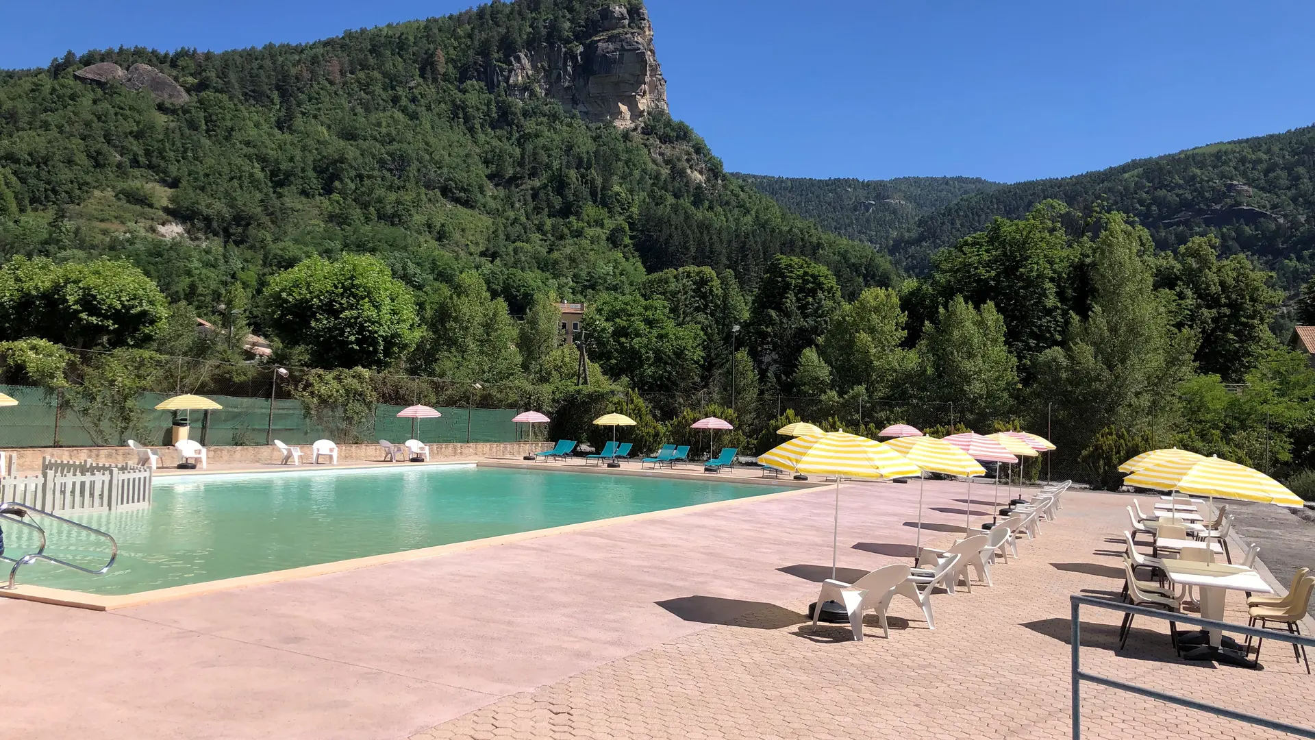 Chauffée par panneaux solaires mais non couverte, la piscine dispose d'un bassin de 25m et d'une pataugeoire ainsi que d'un snack. Sont proposés cours de natation et d'aquagym.