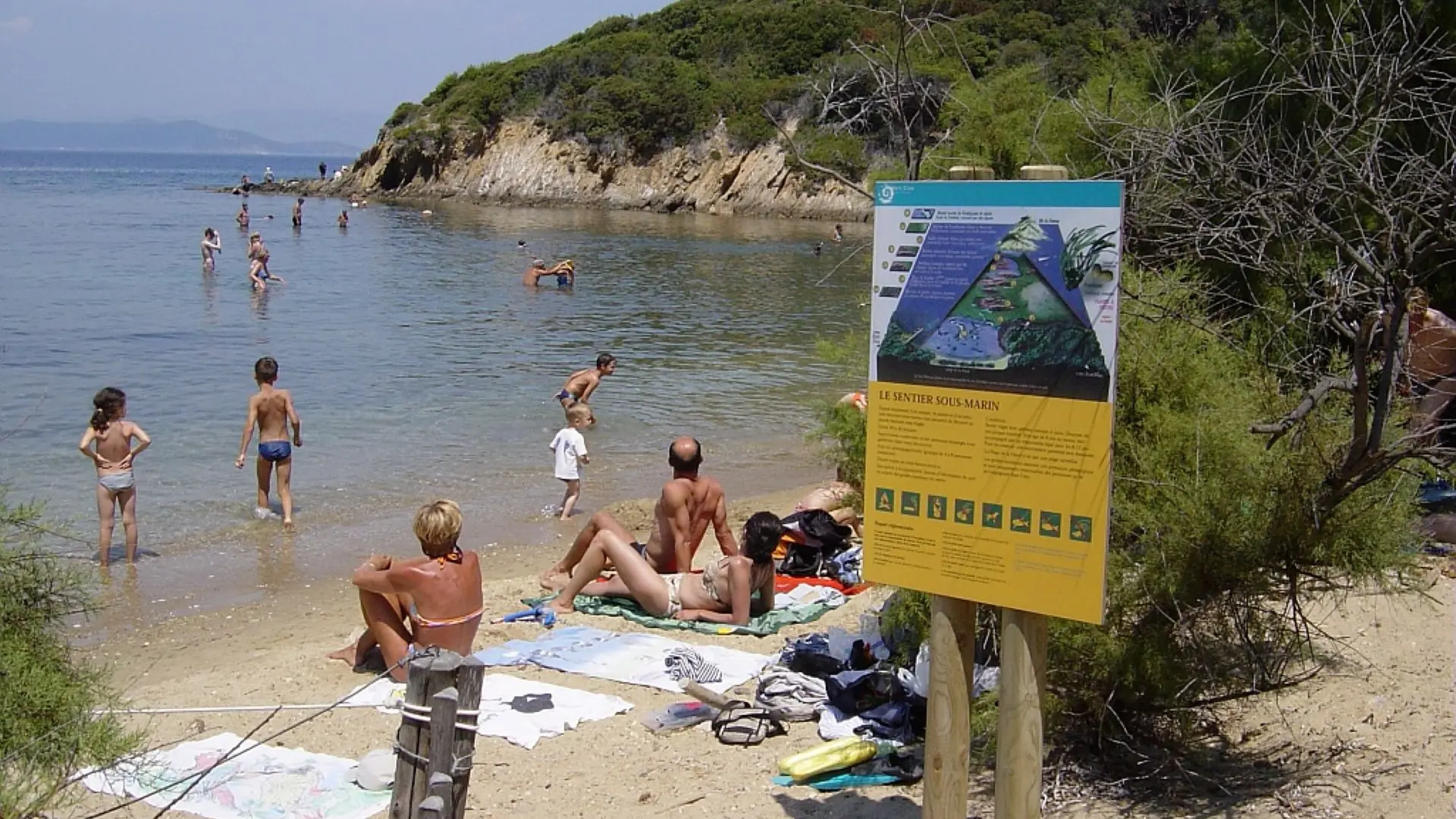 Cette petite plage de sable grossier, ombragée de tamaris et bordée d’une roselière est le cadre du sentier sous-marin pendant la saison estivale.