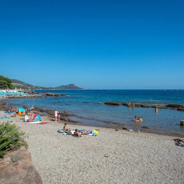 Série de petites plages de sable et rochers. Idéales en famille, les enfants chaussés de chaussures d'eau pourront s'amuser dans les bassins formés par les rochers. Une promenade ombragée (et éclairée de nuit) rejoint le petit port de Boulouris.