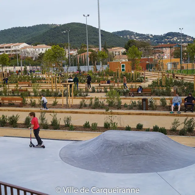 Une aire de jeux pour enfants pour les 1-14 ans ainsi qu’un skate park pour les 8 ans et plus, 12 terrains de jeu provençal, une fontaine sèche et un espace de fitness urbain… qui viennent compléter le plateau sportif attenant.
