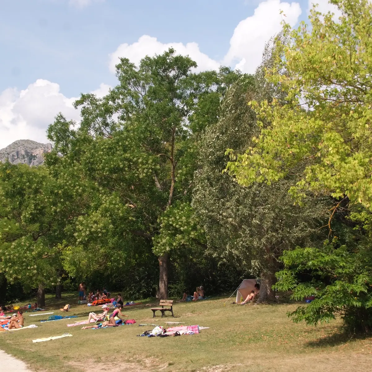 Location de canoë, plage, jeux pour les enfants.