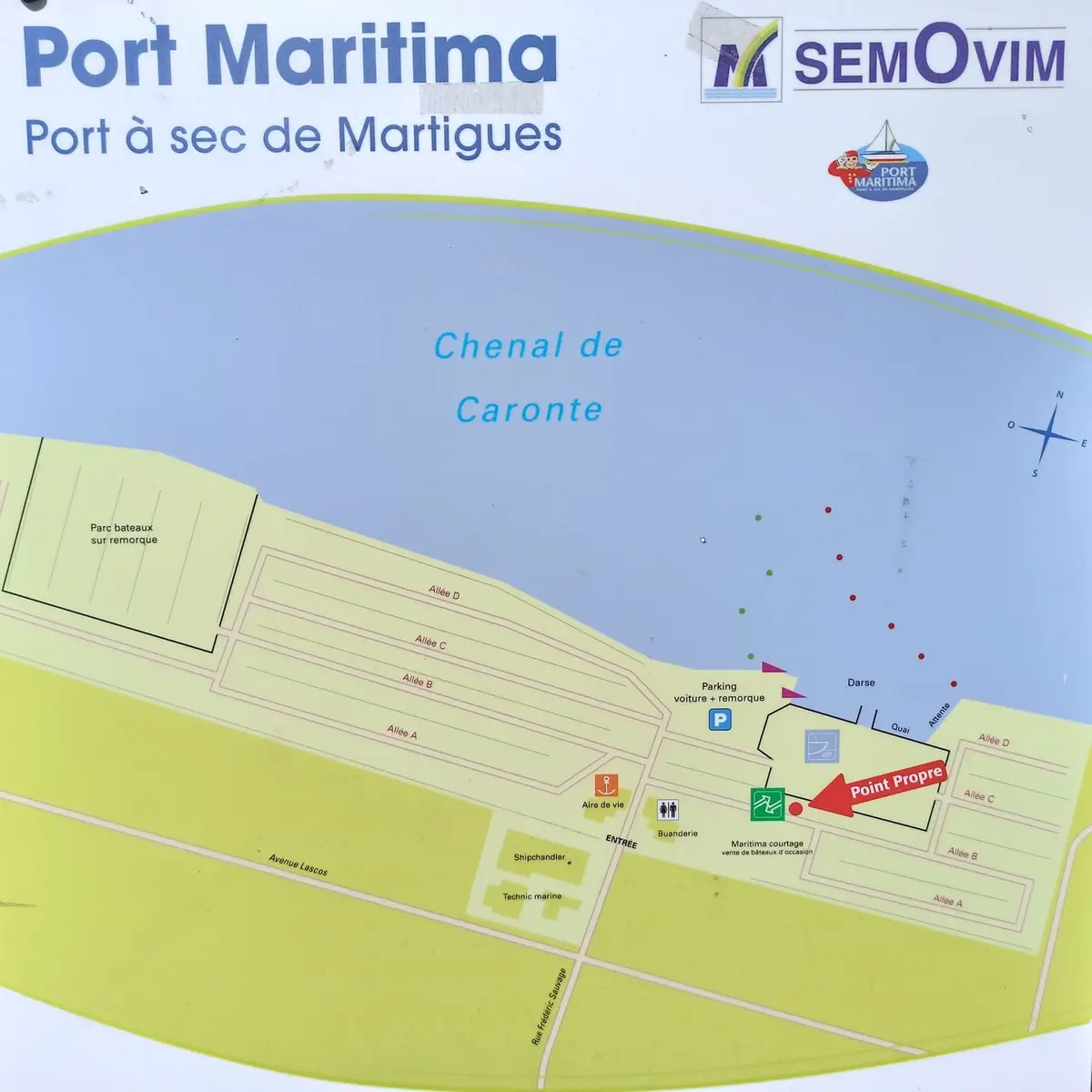 Il dispose d'une aire de carénage de 5 000 mètre carré, d'un parc à bateaux sur remorques et de 2 mises à l'eau exclusives.
