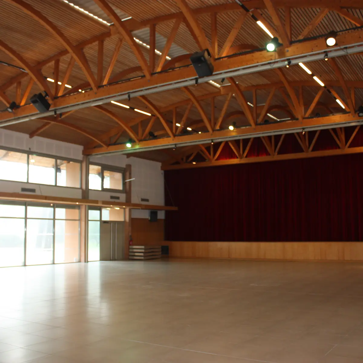 La salle des fêtes est équipée de cloisons amovibles, elle peut être divisée en 1/3-2/3 et proposer des espaces plus adaptés selon la taille de la manifestation.