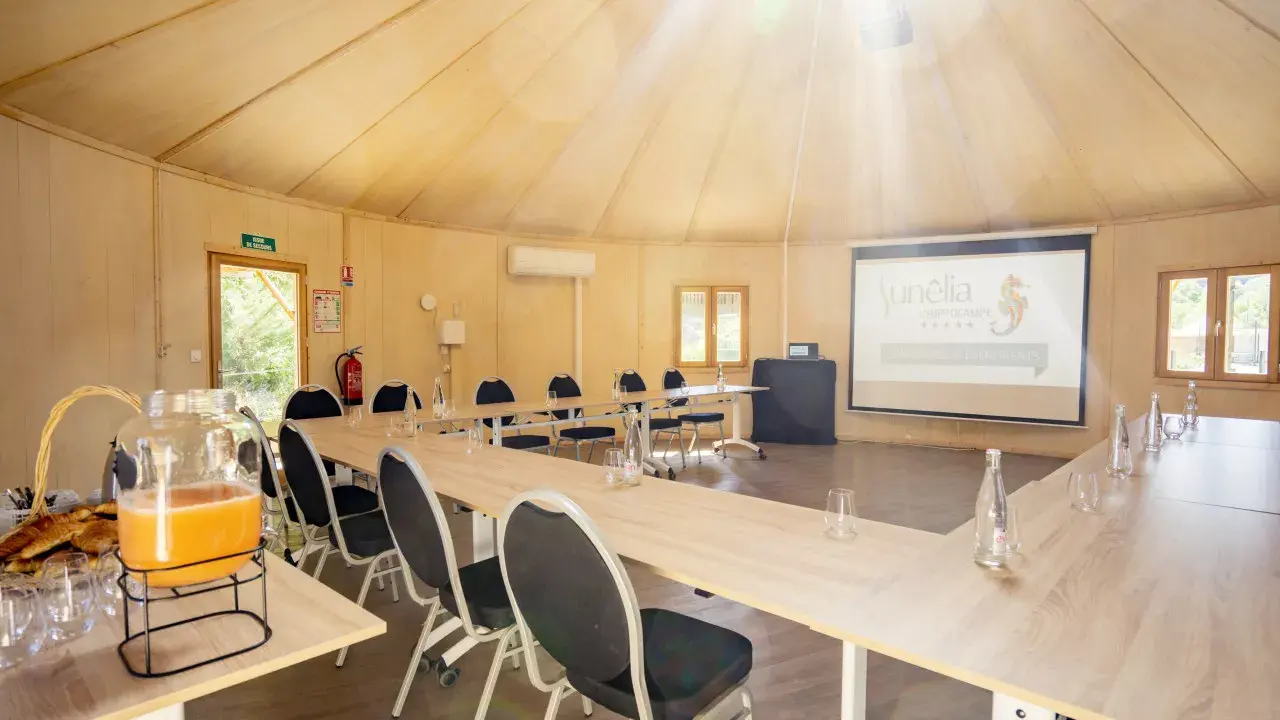 2 grandes yourtes de 65 m² (pouvant accueillir jusqu'à 50 personnes en format théâtre)