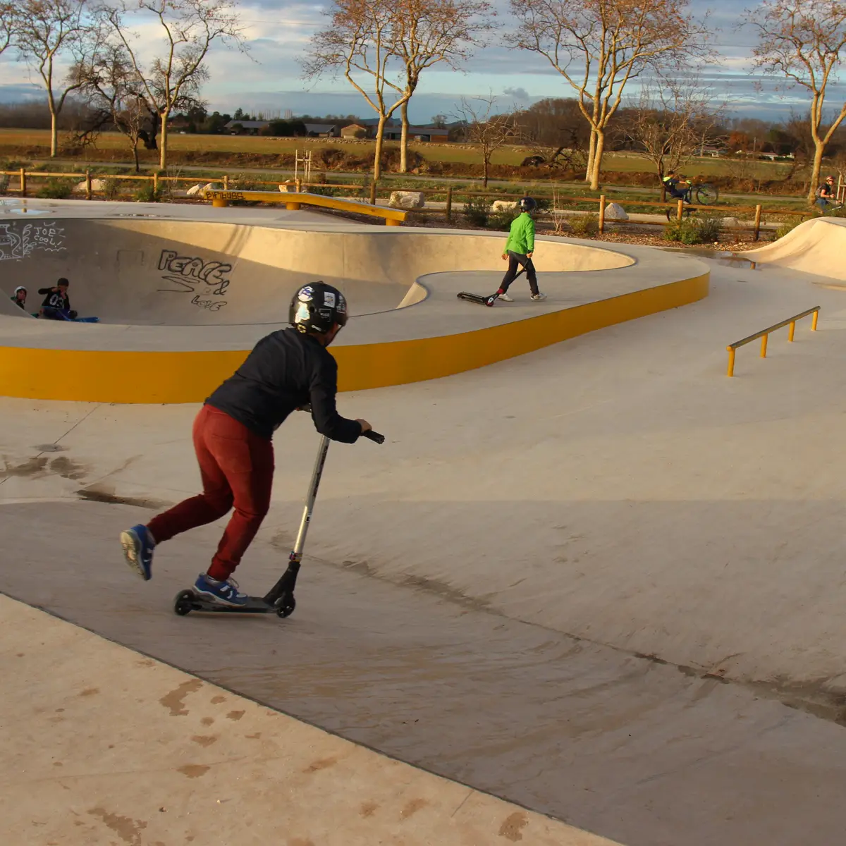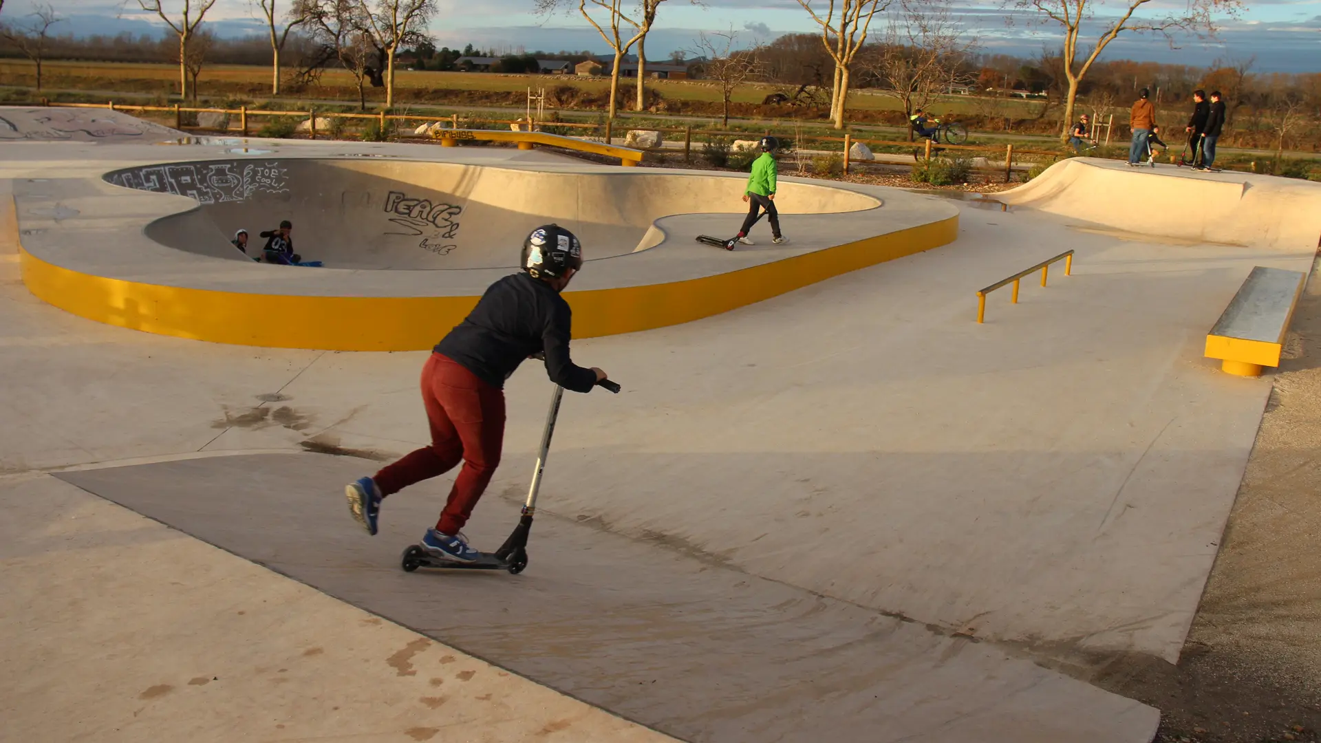 Un espace aménagé pour la glisse, en roller, en planche ou en trottinette. Public familial et jeune. Parking à proximité. Possibilité de pique-nique sur l'espace de loisir, situé à côté.