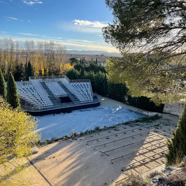 Créé en 1996, le Théâtre de Verdure est niché devant le Rocher du Cagnard, au dessous de la Chapelle du Puech (XVIIème siècle). Il bénéficie d’une situation privilégiée, à l’abri du vent, et d’une excellente acoustique grâce à sa falaise en fond de scène.