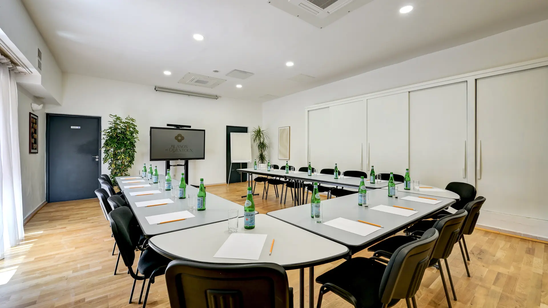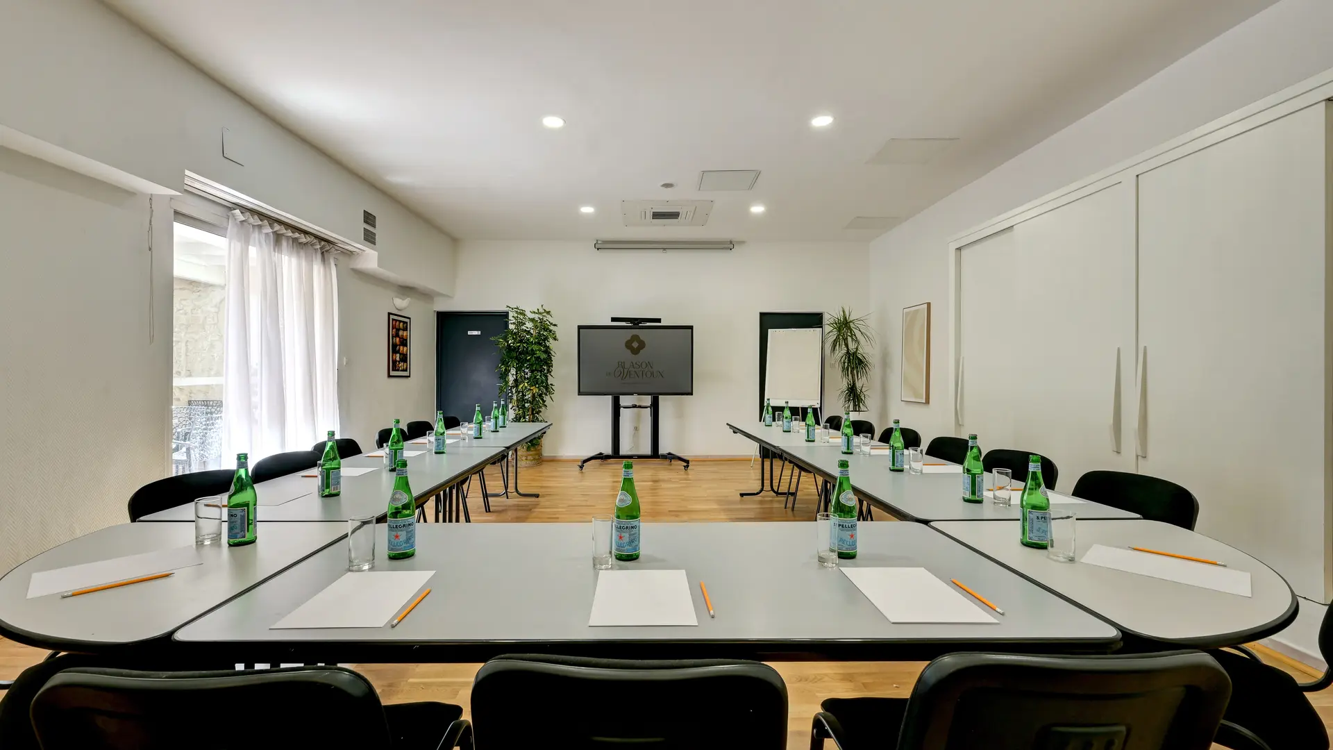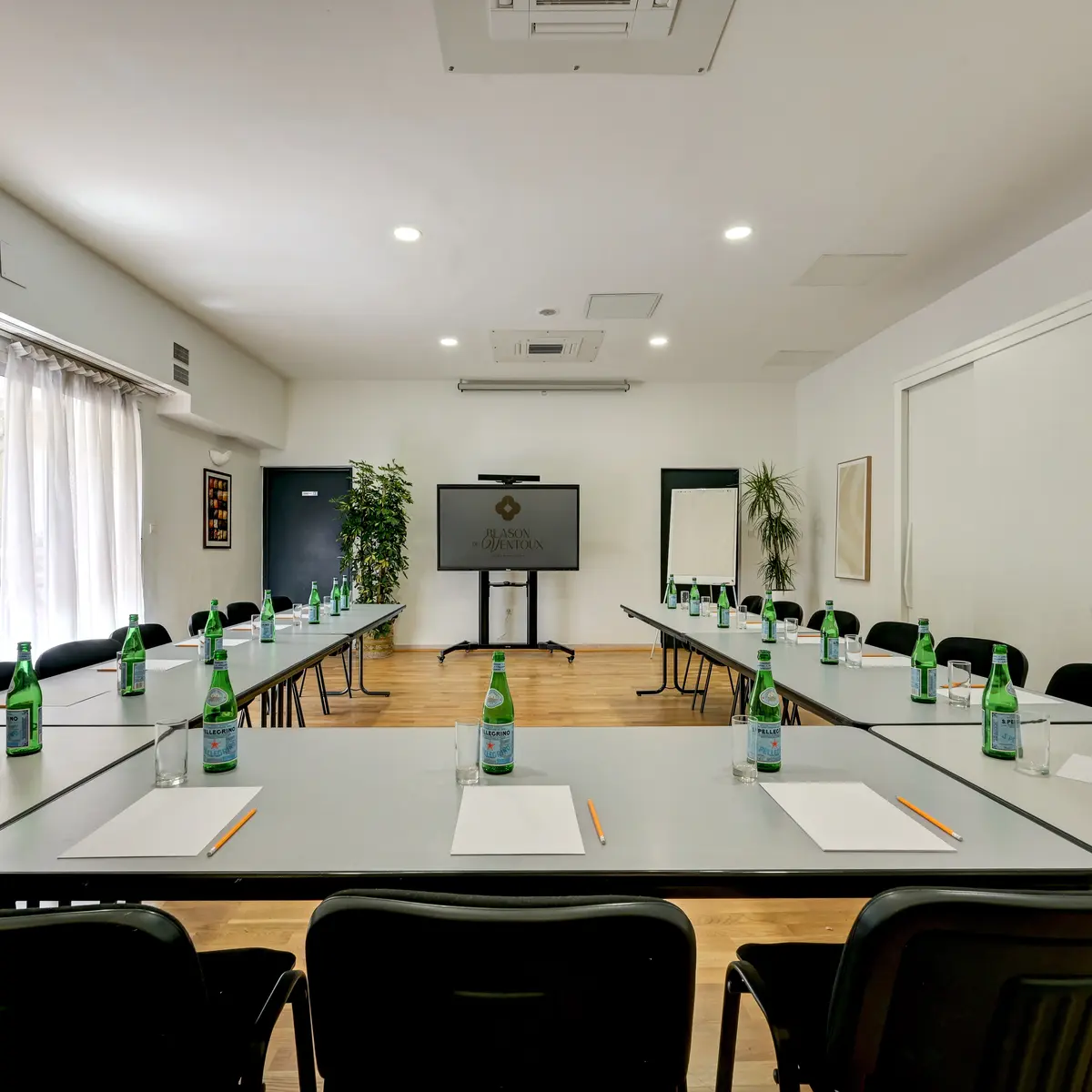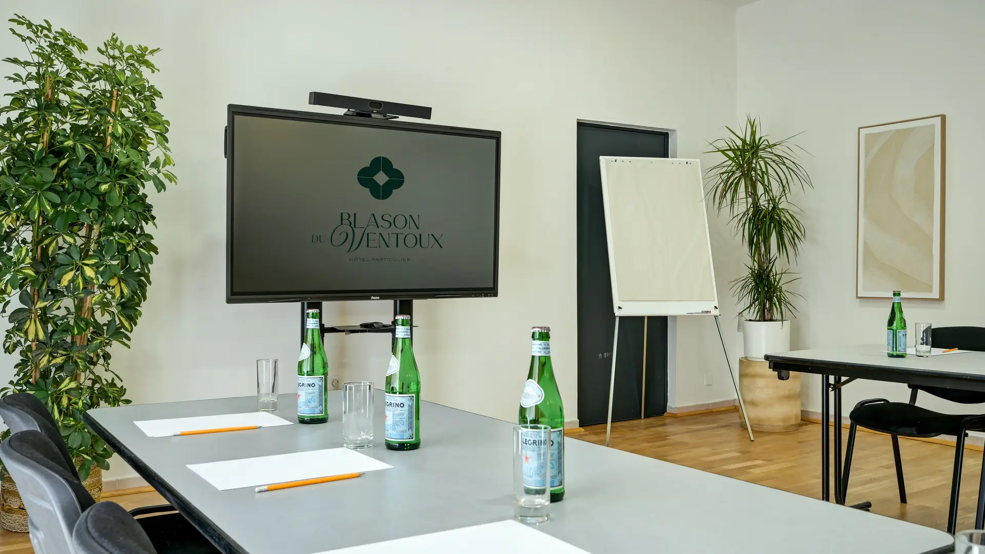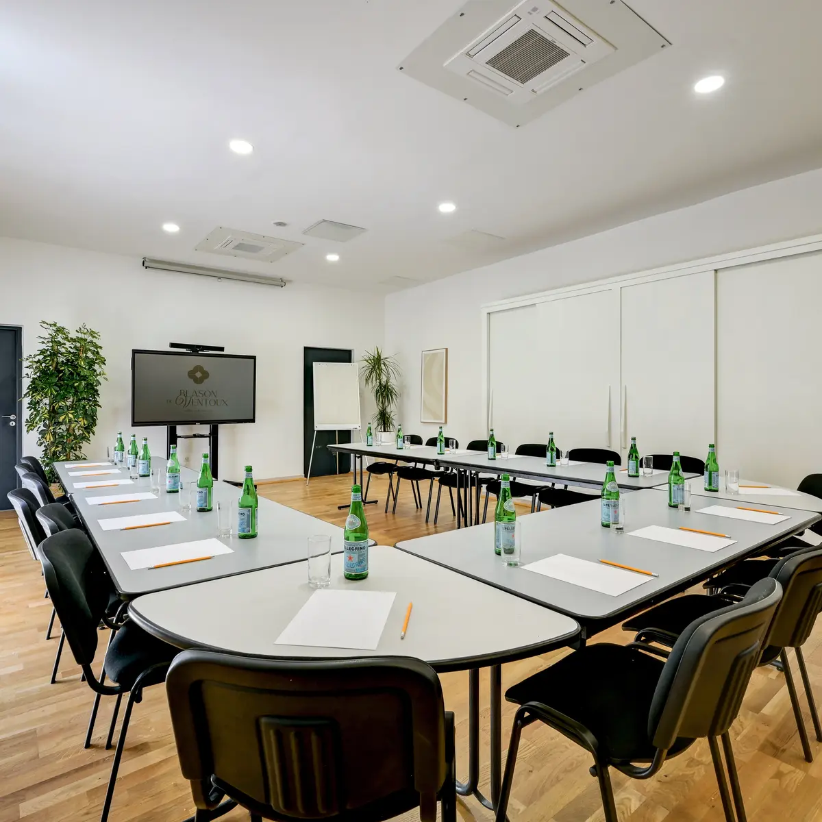 La salle est calme, lumineuse et entièrement équipée pour vos séminaires et réunions professionnelles entre Orange et Avignon dans le Vaucluse. En saison, les pauses se prennent sur le patio au coin de l’olivier. Idéal pour allier travail et détente.