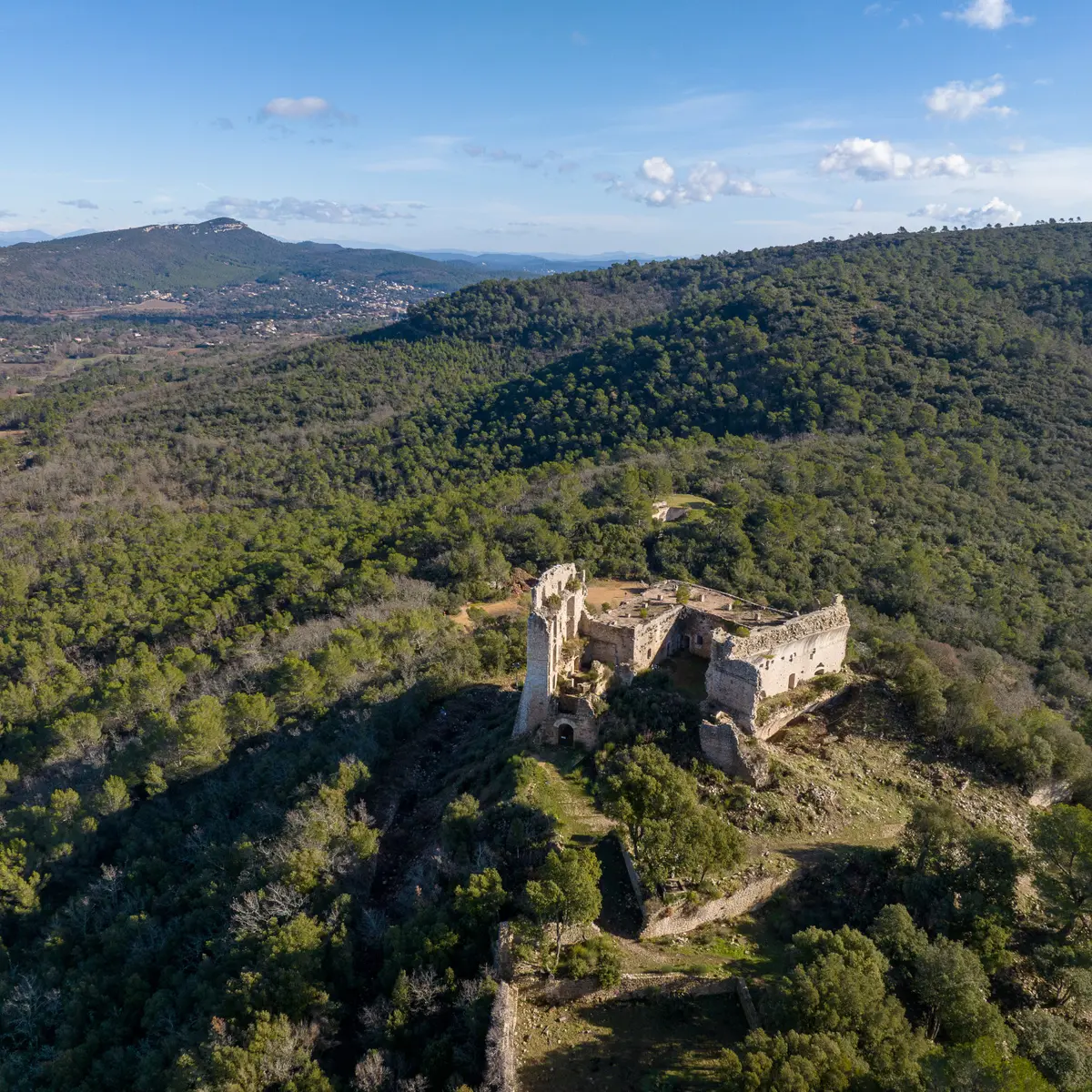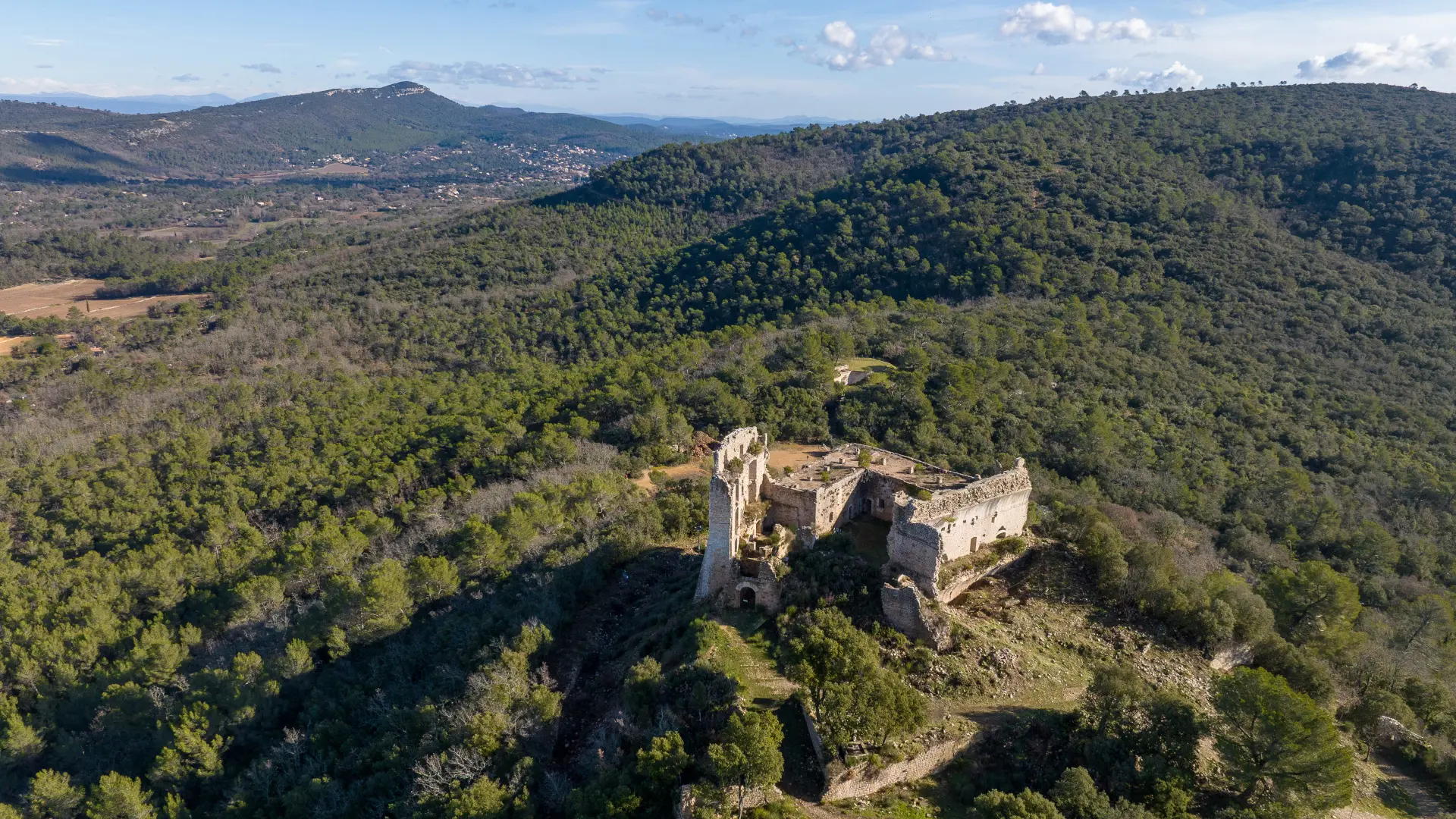 La première partie de la randonnée conduit au pied des ruines du Castellas, avant de parcourir la forêt de chênes. Le retour s'effectue sur une piste en balcon qui domine la vallée de l'Issole.