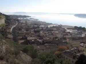 7- Arrivé au Musée Municipal Paul Lafran, prendre à gauche et monter les escaliers pour accéder à l'acqueduc de l'Horloge. Traverser le pour accéder au promontoire. Panorama sur le quartier du Port. Revenez ensuite sur vos pas et arrivés devant le musée prendre tout droit et descendre la rue Raspail. Vue sur le clocher.