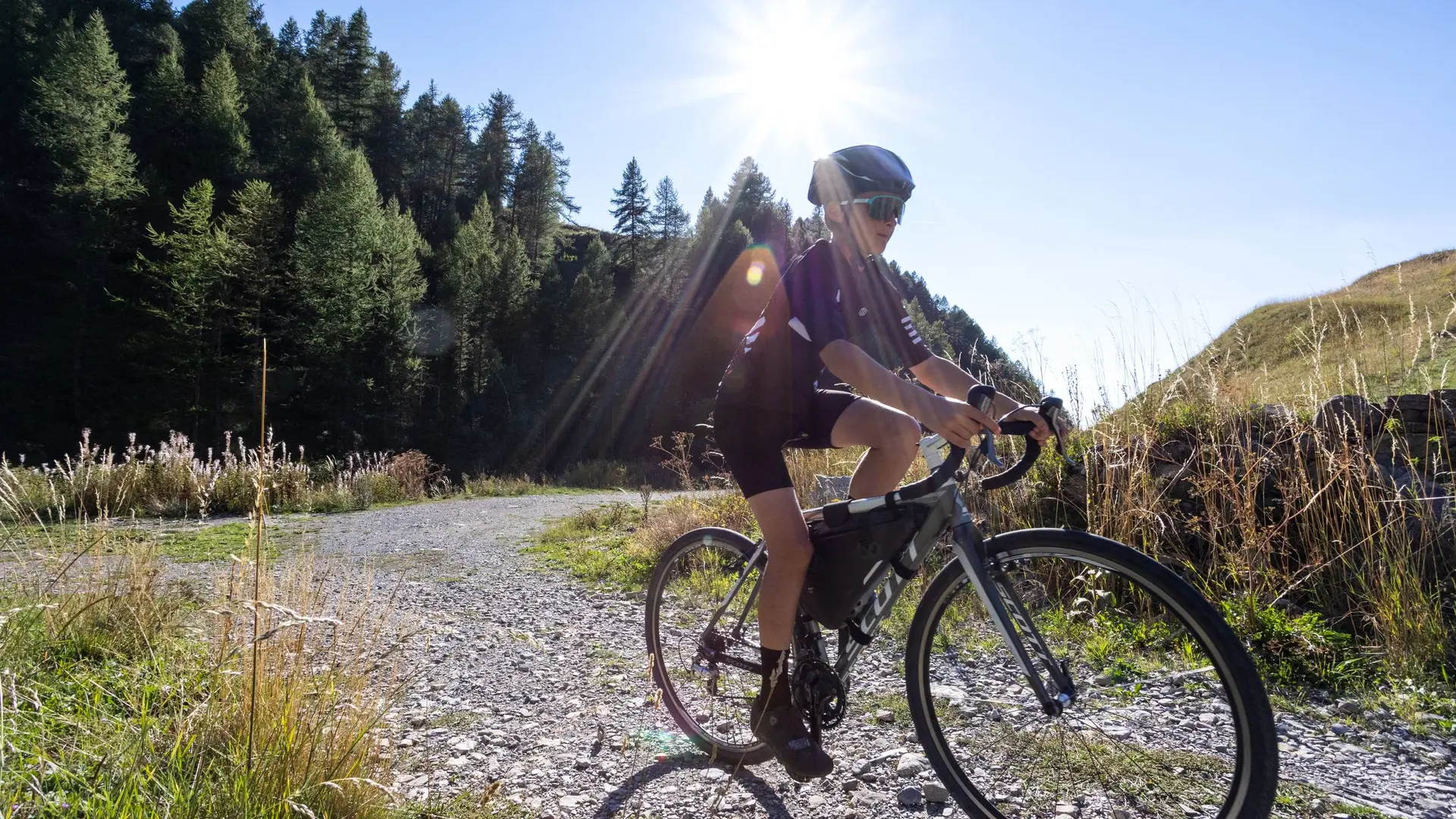 Vous évoluez en zone de montagne, privilégiez des pneus de Gravel large, des freins à disque hydraulique et maitrisez votre vitesse.