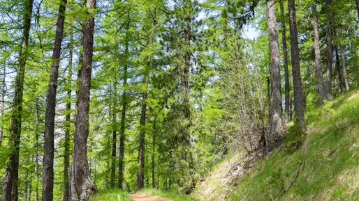 Prendre à droite : le sentier emprunte la piste de l'Orivette. Au replat, continuer à descendre sur 50 m, puis prendre à gauche "Boucle verte / Retour station".