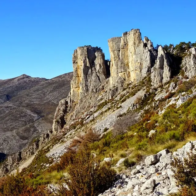 Cette formation dolomitique intrigue le regard, elle est formée de cheminée perchée sur une crête avec vue imprenable.