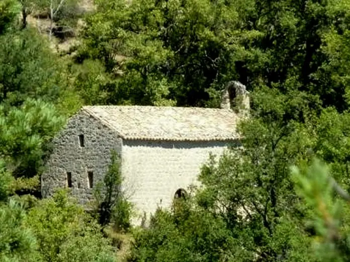 Dans la prairie sous la ruine, tourner à droite et longer le ruisseau. Passer à gauche au-dessus de la clue puis descendre dans la chênaie. Au carrefour de sentiers, continuer tout droit, franchir la barre rocheuse et descendre jusqu'à la Chapelle St Pierre.
