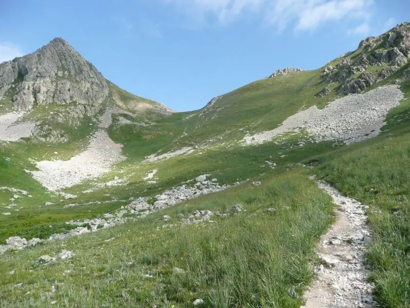Séjourner à Arvieux sans aller aux chalets d’alpage de Clapeyto : impossible ! On peut même parier que tu y reviendras ! Aller jusqu’au camping de l’Izoard, le traverser et poursuivre jusqu’à la fin de la route goudronnée, c’est déjà le début de l’aventure ! La voiture garée sur le petit parking « le Pré des Vaches », la randonnée commence par la piste à droite et monte tranquillement… puis arrive aux premiers chalets dans un joli vallon. Elle continue à droite par le sentier montant dans la prairie fleurie. Aucune possibilité d’erreur de parcours, c’est toujours tout droit jusqu’au col où la vue est imprenable sur le Grand Pic de Rochebrune et le plus haut sommet du Queyras : la Font Sancte qui culmine à 3342m d’altitude ! Redescente par le même itinéraire. Ce col est situé sur le fameux GR5 qui relie le lac Léman à la Méditerranée. Avant l’ère de l’automobile, les habitants de Brunissard se rendaient à Briançon par cet itinéraire.