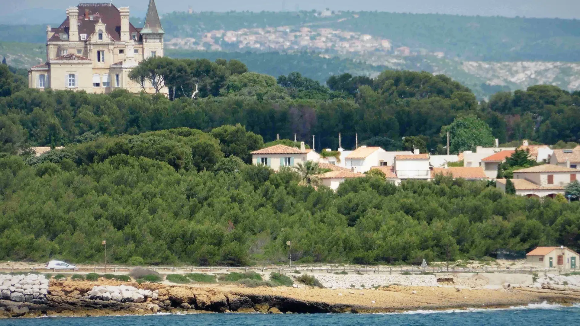 On ne peut pas rater le château. D'ailleurs, il a été fait pour. En 1854, Jean-Baptiste Charles Roux, propriétaire d'une huilerie-savonnerie à Marseille, arrive à Sausset-les-Pins et fait construire l'année suivante une sorte de château, dans une pinède de 300 ha, face à la mer. Il la veut imposante et dominante comme une forteresse au-dessus des cabanes de, visible plus que voyante. Ce qui n'est pas tout à fait la même chose.