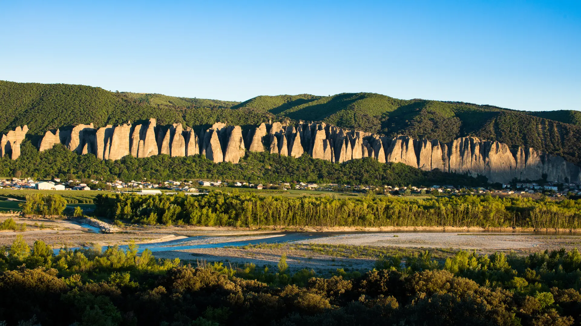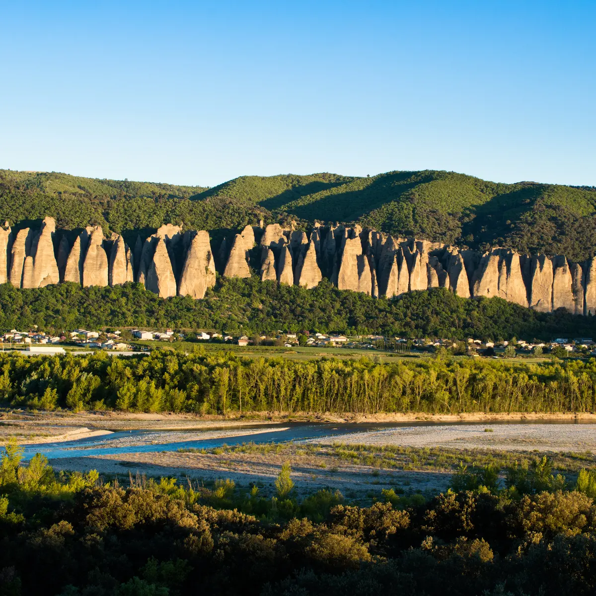 Un parcours dans la Réserve Ornithologique de Haute-Provence qui longe le lac puis le canal de la Durance pour ensuite profiter d'une vue exceptionnelle sur les rochers des Pénitents des Mées. Ce parcours propose 60% de chemins et 40% routes goudronnées.
