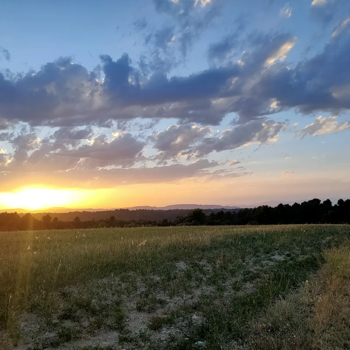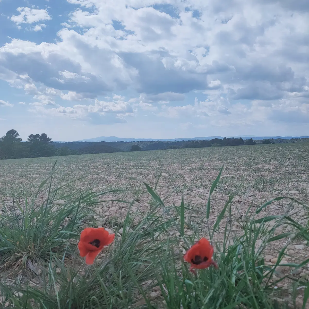 Face au panneau, s'avancer sur le chemin goudronné en direction du centre équestre, au chêne que vous avez sur votre droite, prenez à gauche comme si vous alliez sur le parking, puis de suite à droite dans la montée raide sur 20 m. Suivre le sentier à plat sur la gauche, lequel vous ramène derrière le château, rester sur celui-ci dans l'allée de buis, longer le champ de blé jusqu'à La Bouscole, Ravin du Pauron, Marchand de Nuages, Ruines de Pujol, Laval puis Château Laval.