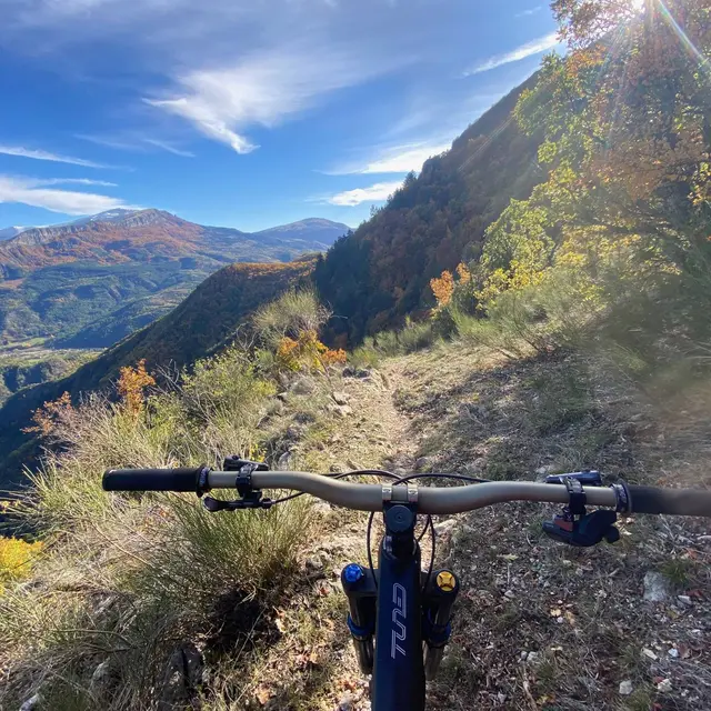 A l'embranchement des pistes 5/6/7, prendre le sentier en balcon, plein sud, sur 1 km. Prendre le sentier sur la gauche et enchaîner les pet