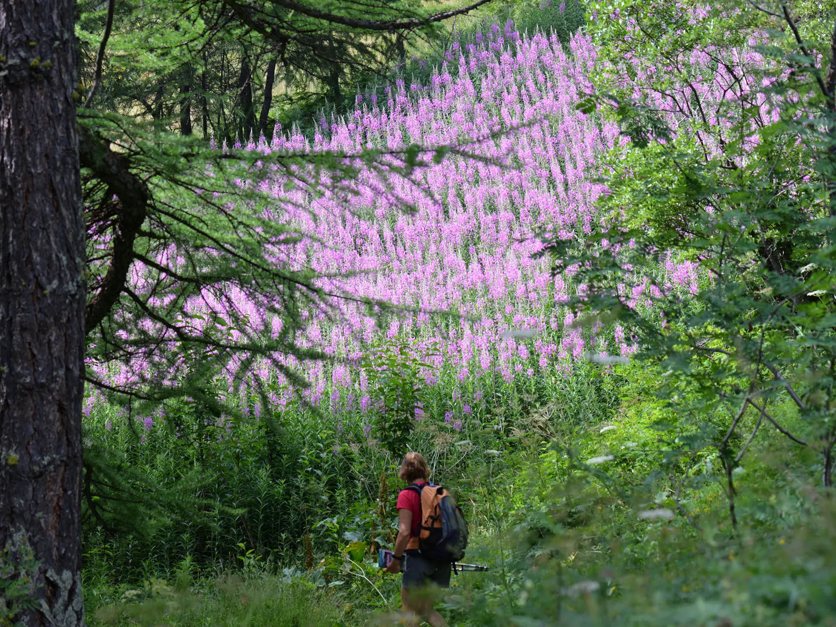 Ce petit sentier en balcon, bordé de mélèzes et de cerisiers longe le canal de la Cime jusqu'à rejoindre les Combes. Une randonnée agréable et rafraichissante aux portes de la réserve des Partias qui évoque les méthodes ancestrales d'irrigation.