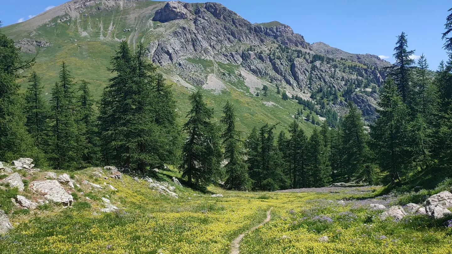 À la bifurcation prendre le sentier de gauche en direction du Col de la Trancoulette (panneau). Le sentier s’élève en forêt sous le Rocher Jaune, remonte un vallon puis entame une courte montée soutenue jusqu’au col.