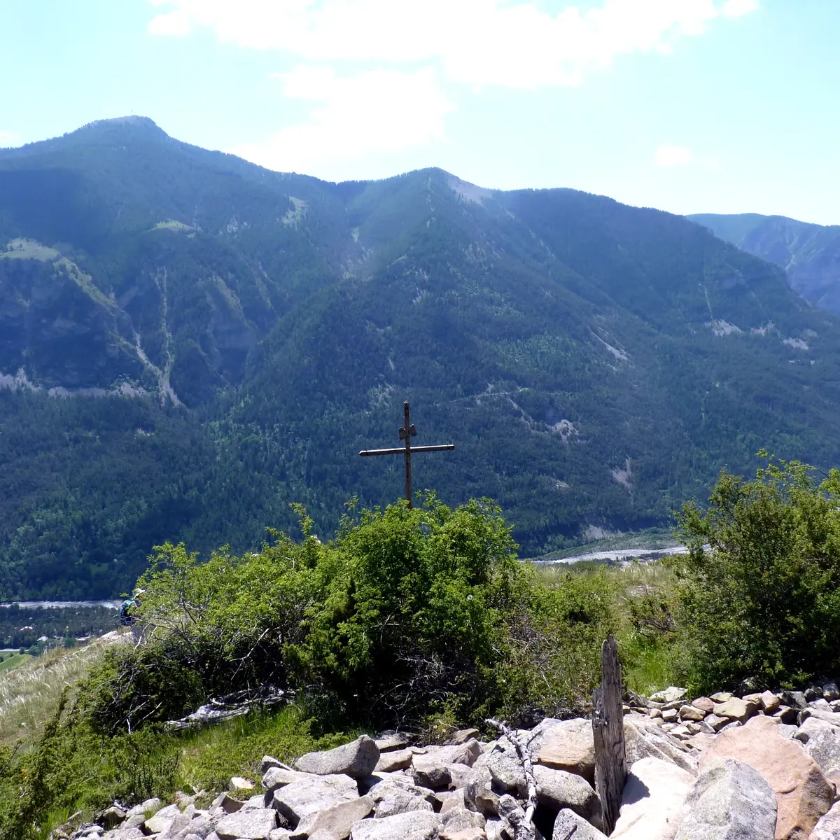Poteau Bois du Puy (1 490 m), monter à gauche. Après une croix, suivre le chemin de débardage sur 200 m puis prendre à gauche. Sortir peu à peu du couvert forestier et parvenir à la Croix du Puy à travers une prairie.