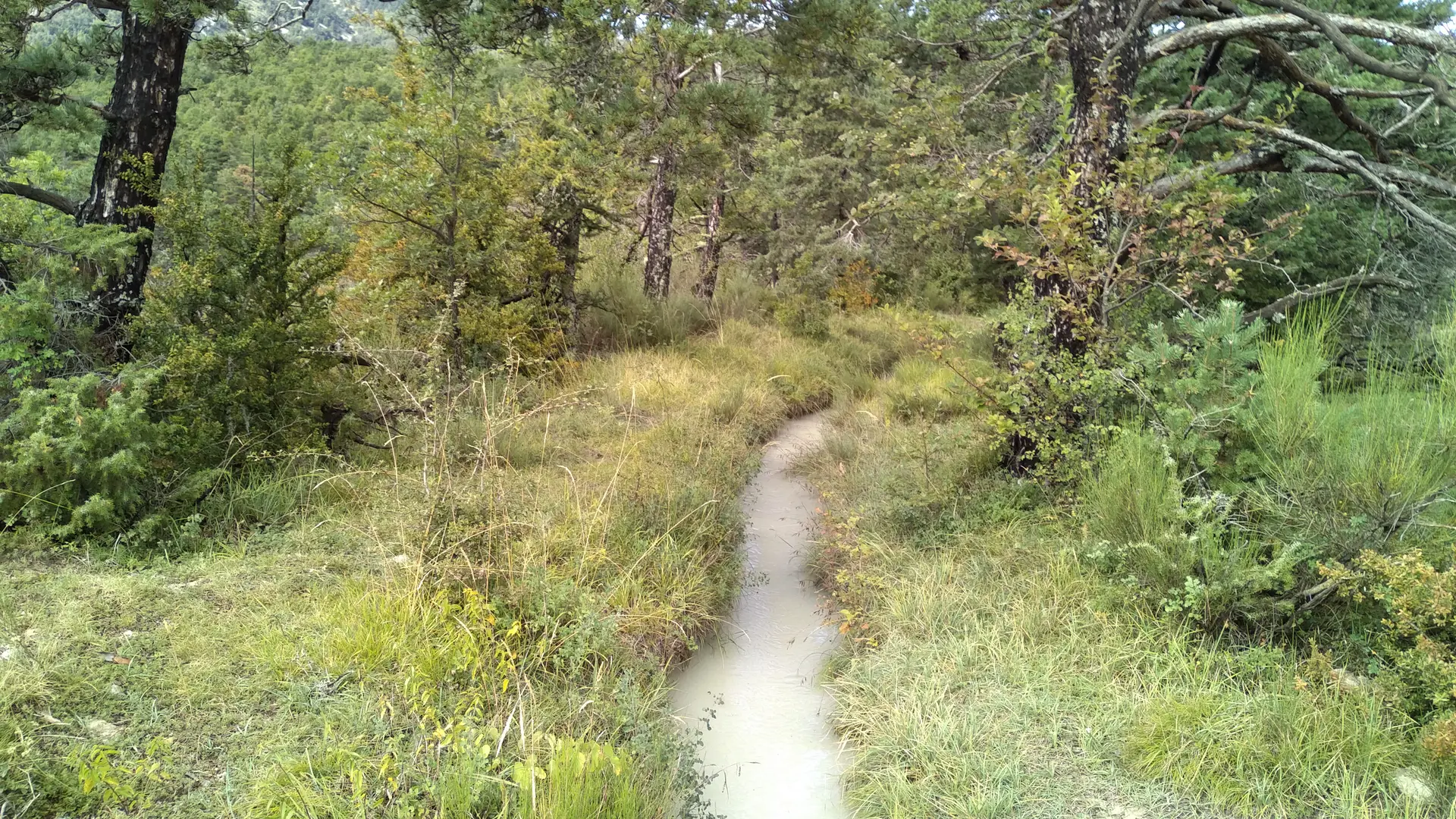 Un itinéraire qui permet de découvrir une curiosité géologique. Avec son sol calcaire creusé de vasques, son plafond constitué de galets et orné d'une myriade de stalactites, la grotte de Méailles est un lieu très singulier.