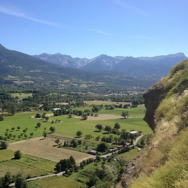 Depuis les remparts de la ville, surplombant la plaine sous le Roc, profitez en famille de ce belvédère ainsi que des nombreux panneaux informatifs qui l’accompagne. Du Roc, redescendez sur la plaine pour une paisible boucle le long de la Durance. Cette étendue agricole représente un véritable réservoir de biodiversité.