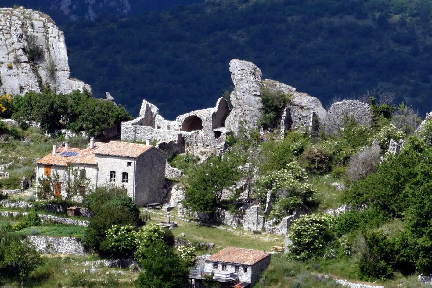 Pour le retour, monter vers l'église en ruines en cours de « rénovation »puis emprunter le chemin muletier en assez bon état qui redescend derrière le village pour rejoindre la piste. Reprendre la piste en descente et rester sur celle-ci en laissant tous les sentiers et drailles à droite et à gauche.