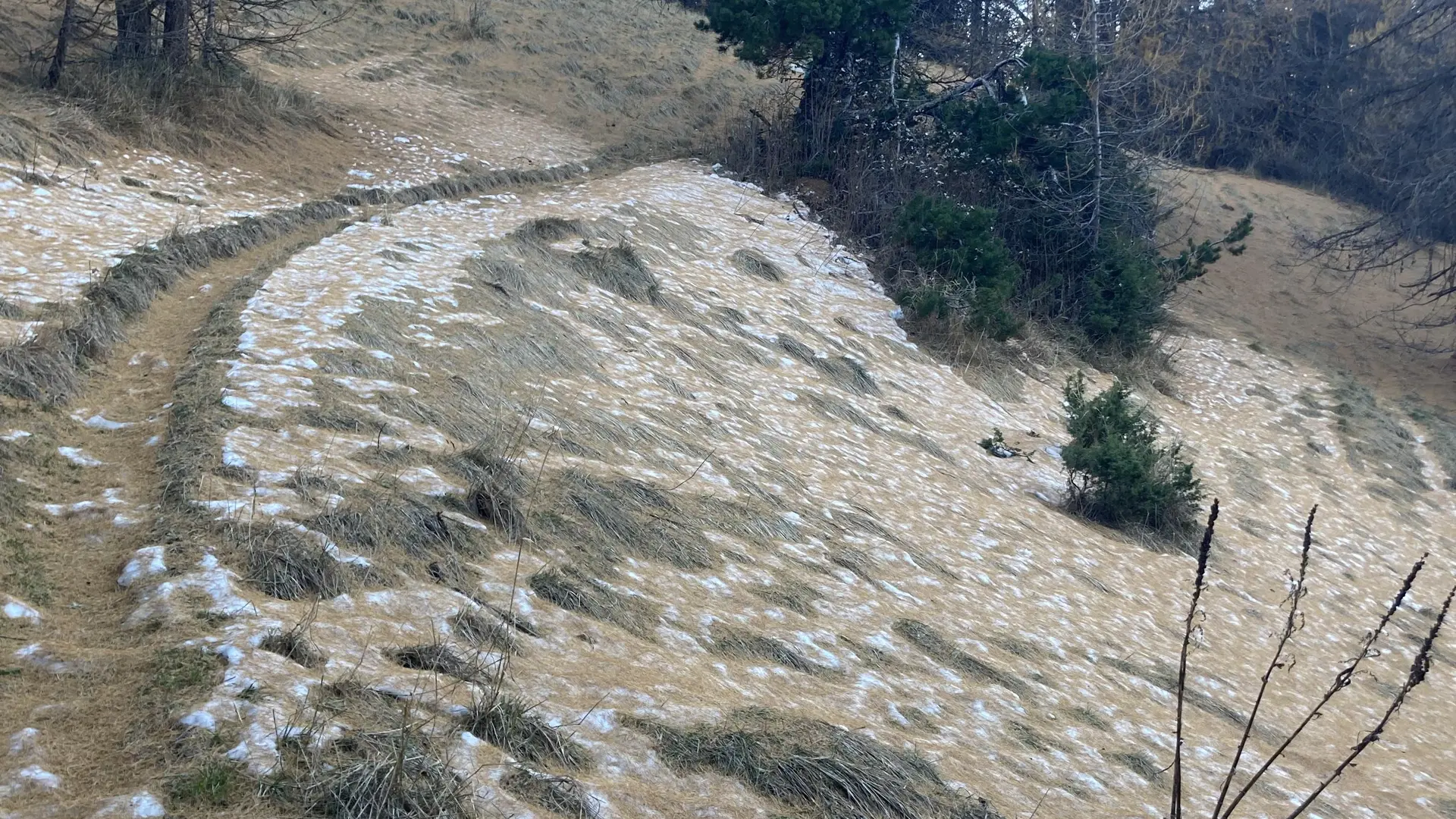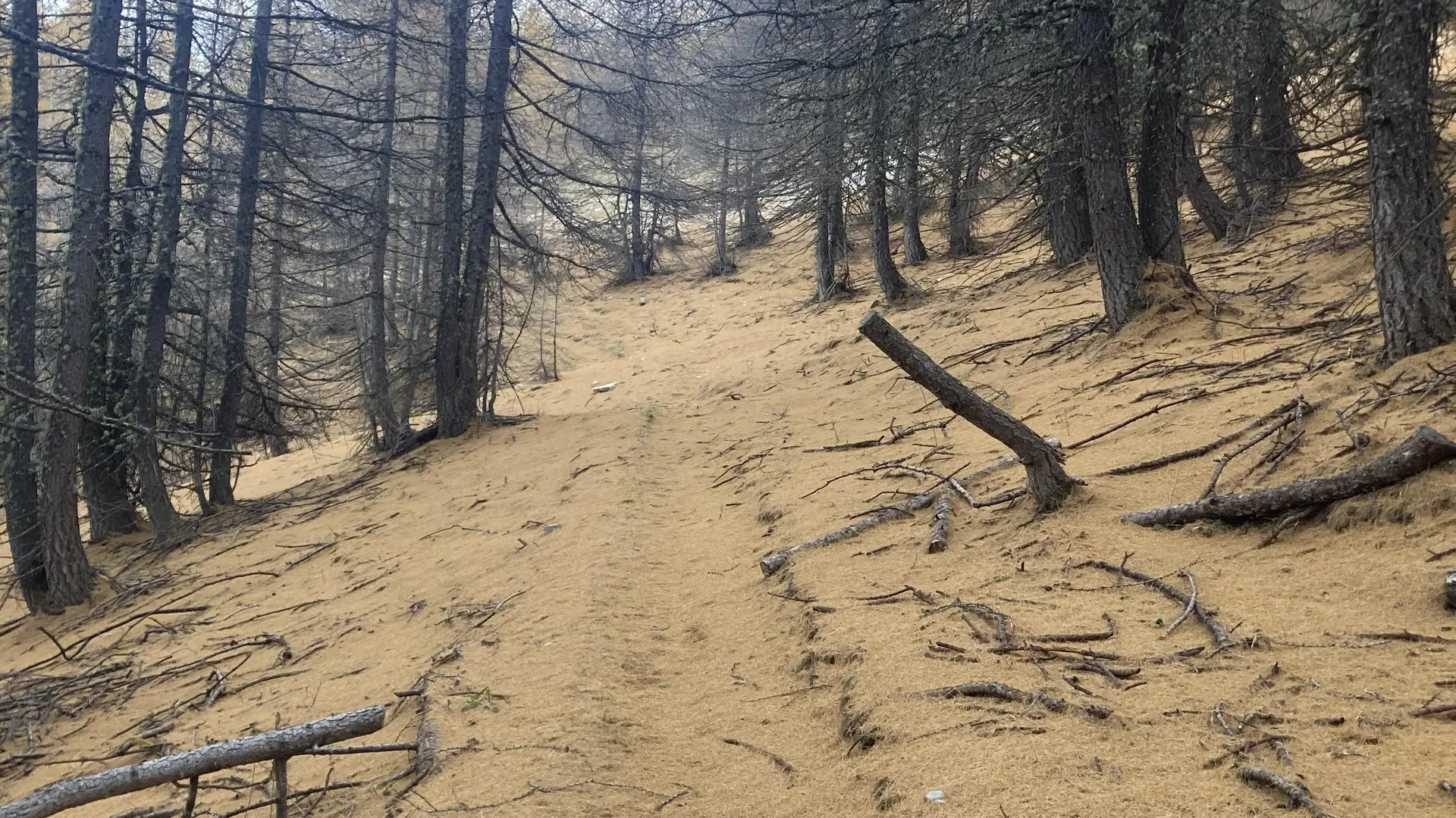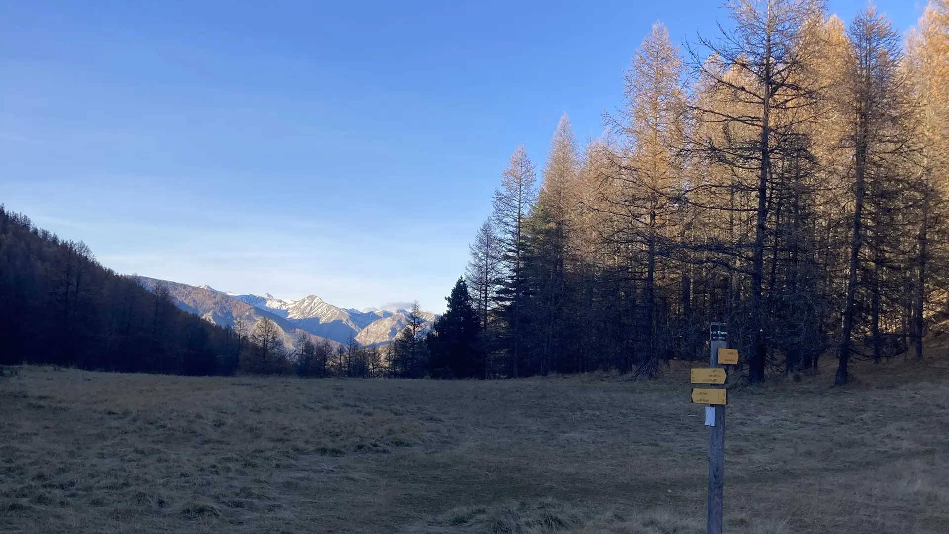 A la balise mentionnant le petit hameau de Peyresq, monter à gauche. Le sentier sort du village puis monte en versant sud dans un bois de pins. Il sort ensuite de la forêt, franchit une crête et traverse un versant assez abrupt pour atteindre un carrefour au milieu des pâturages d'altitude.