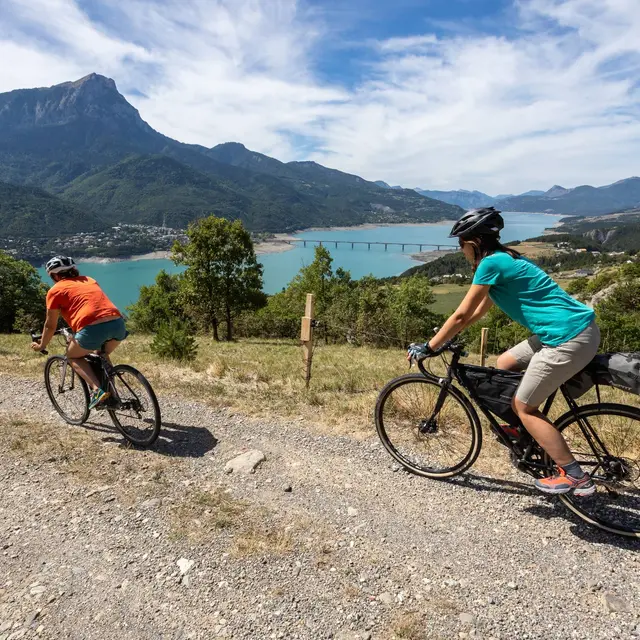 Le Tour du Lac de Serre-Ponçon (TSP) revient dans sa version Gravel ! Au programme ; de belle pistes DFCI hyper roulantes, entrecoupées de portions de Gravel de montagne et des panoramas exceptionnels. En prime, pour les plus courageux, de nombreux cols et sommets mythique comme celui du Mont Colombis, du Parpaillon, ou encore de Pontis. L’ascension la plus exigeante sera récompensée par un des plus beaux balcons de ce séjour à flanc du Mont Guillaume : le chemin de la Baume. Difficile