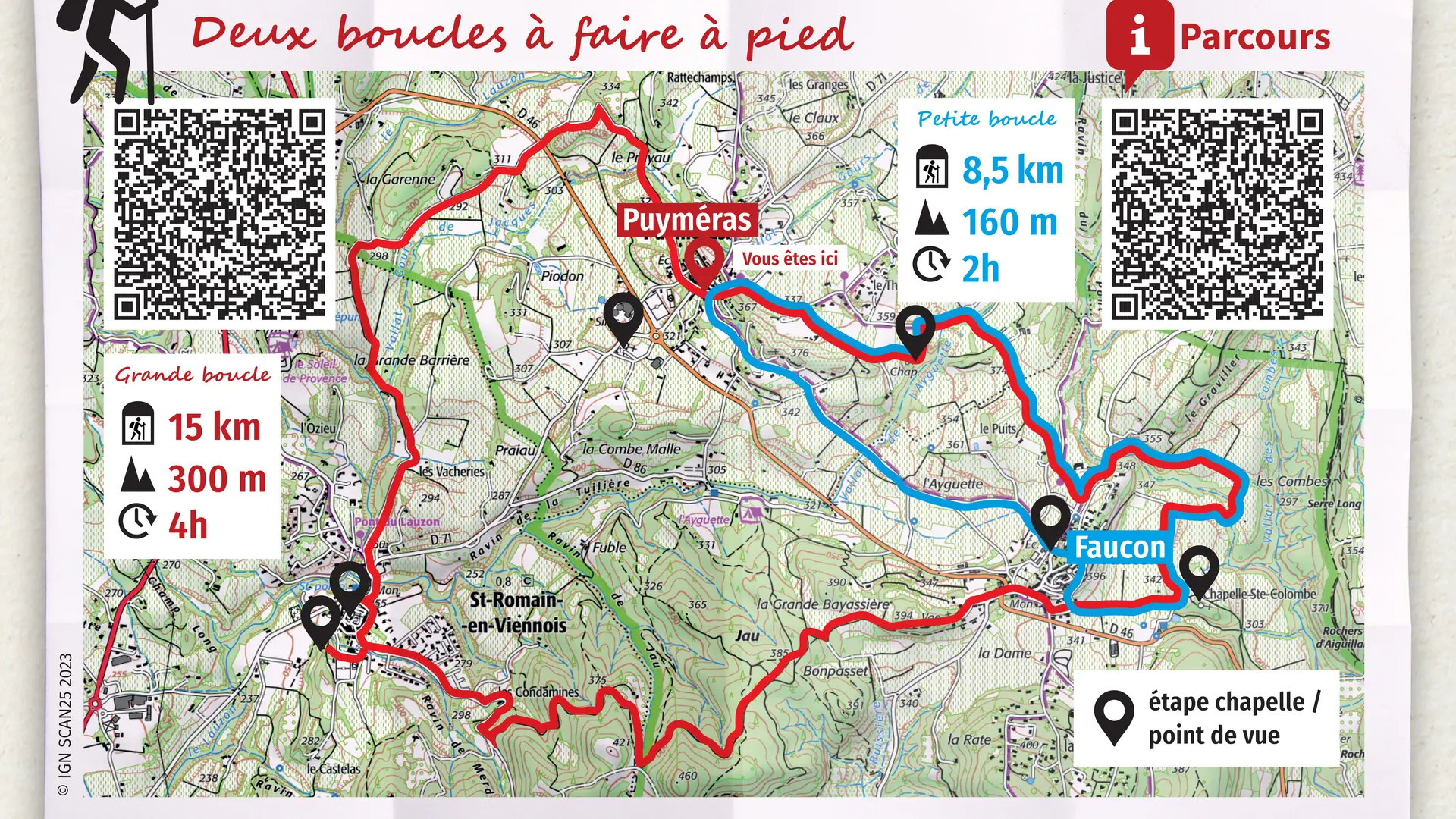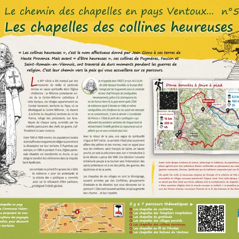 Mais avant « d’être heureuses », ces collines de Puyméras, Faucon et Saint-Romain-en-Viennois, ont traversé de durs moments pendant les guerres de religion. C’est leur chemin vers la paix qui vous accueillera sur ce parcours.