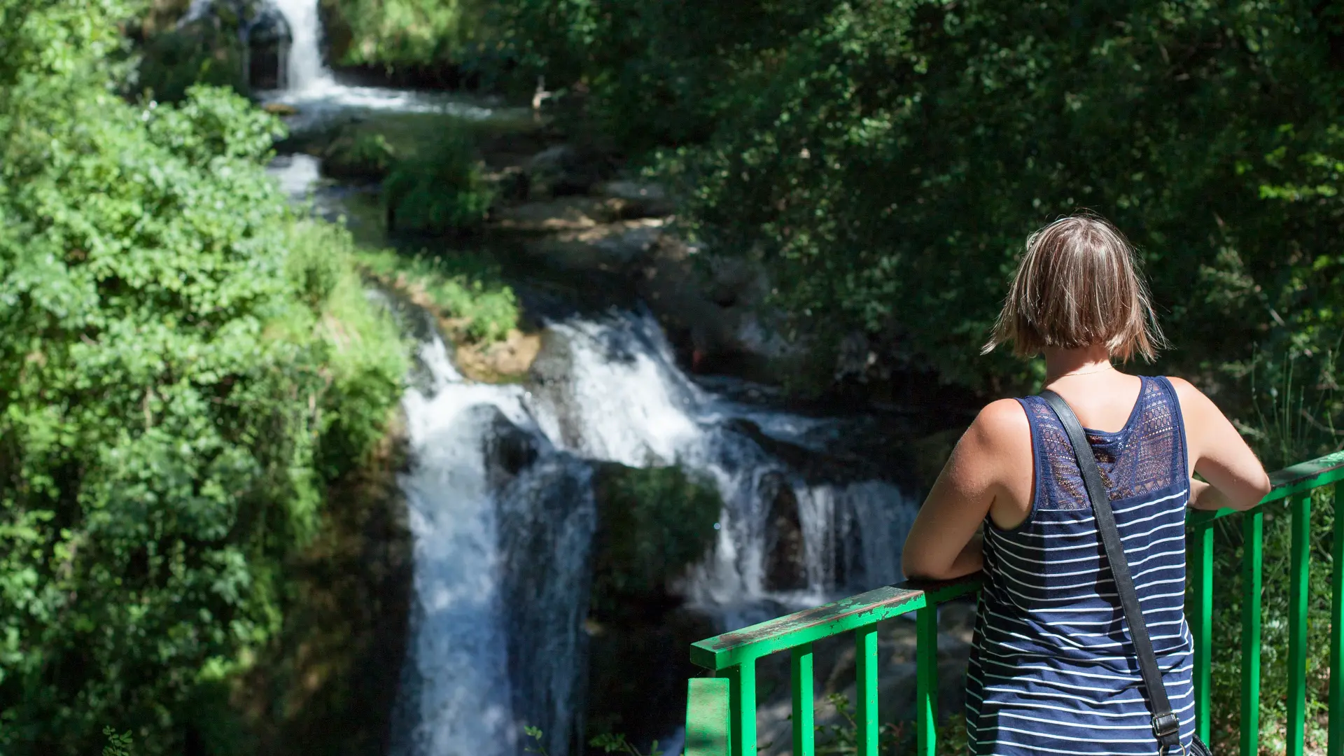4. A l’intersection continuer en direction du lac puis quitter la route pour suivre de nouveau le canal sur la gauche jusqu’aux Chutes du Caramy (Prudence, rester derrière les barrières !). Monter le petit escalier pour rejoindre la route. Tourner à gauche et passer devant le barrage.