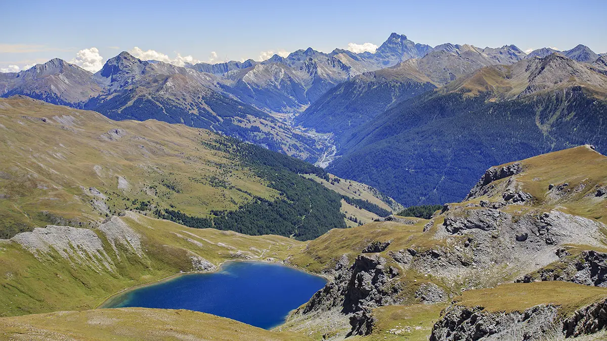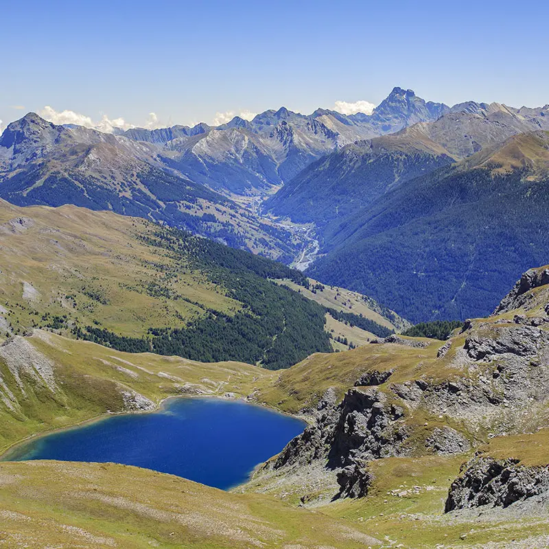 Au départ du village d’Aiguilles, cette rando s’annonce sportive ! Le bois des Eygliers cèdera bientôt la place aux alpages avant d’atteindre la crête du Serre de l’Aigle et sa vue imprenable sur le vallon du Malrif. L’arrivée sur le lac du Grand Laus est une récompense pour les efforts fournis. Sortir l’appareil du sac pour une photo inoubliable du Mont Viso. Pour les plus motivés, monter jusqu’au lac de Mezan, bordé de verdure et peuplé de linaigrettes, puis au lac du Petit Laus (2804 m) avec son ambiance minérale. Le retour se fait par le même chemin. Pour faire une boucle en découvrant un autre versant, redescendre vers Abriès par le superbe vallon des Bertins. Au village d’Abriès-Ristolas, retour possible à Aiguilles avec la navette de l’Escarton (en période de vacances scolaires estivales).