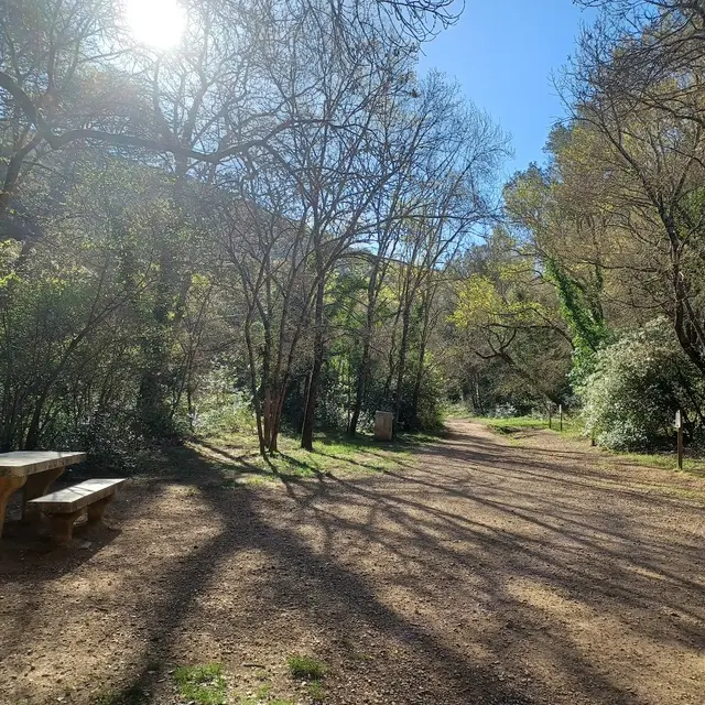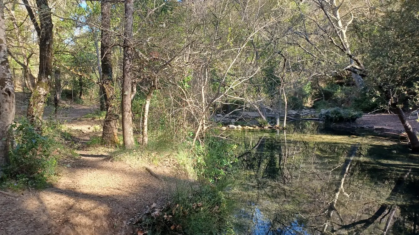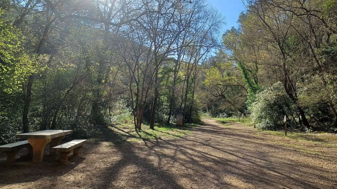 -Départ Parking des Encanaux. Du parking descendre vers la Vède et les Encanaux Ex parking (poteauSB 23). Suivre ‘’La Glacière’’. Monter chemin à droite avec tracé ‘’Bleu’’.