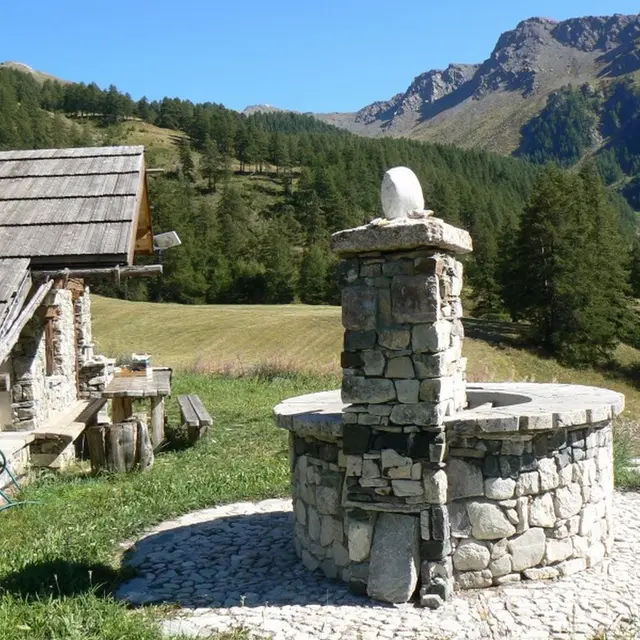 Les chalets sont encore habités l’été et forment avec la chapelle un bel ensemble qui mérite une pause. De l’eau de source coule à la fontaine, une aubaine pour remplir les gourdes. L’itinéraire emprunte soit la piste, soit le sentier en virant à droite. Objectif : le sommet de l’alpage ! Vue sur ce qui était autrefois le domaine de ski alpin d’Aiguilles. La redescente emprunte la piste à droite. Elle te fait faire le tour des chalets d’estive avant de retrouver le chemin de montée.