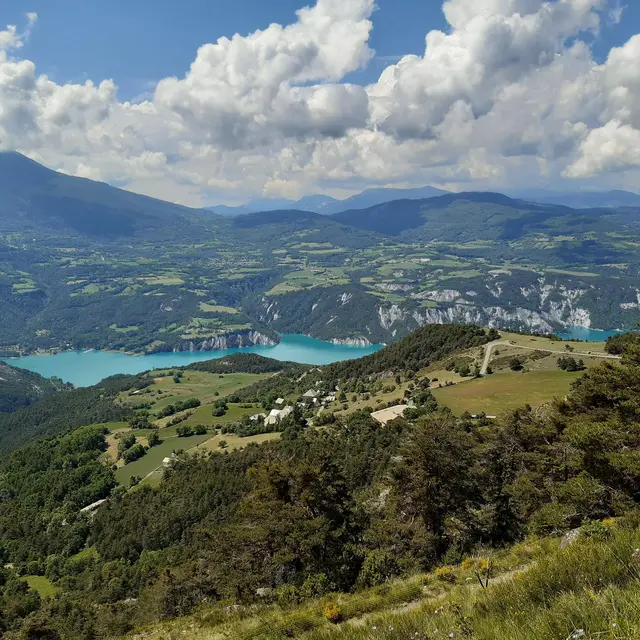 La route qui mène au col de Pontis annonce la couleur en offrant des perspectives magnifiques sur le lac. Le circuit VTT confirme toutes ces promesses en s'élevant loin au dessus de la vallée de l'Ubaye et du lac qui apparaît plus sauvage et presque dénué de toute présence humaine. Cette étendue d'eau qui serpente entre des côtes déchiquetés évoque ici un fjord aux eaux devenues turquoises. Les troupeaux d'ovins qui pâturent sur le parcours rappellent pourtant que vous n'êtes pas seul sur ces reliefs escarpés.