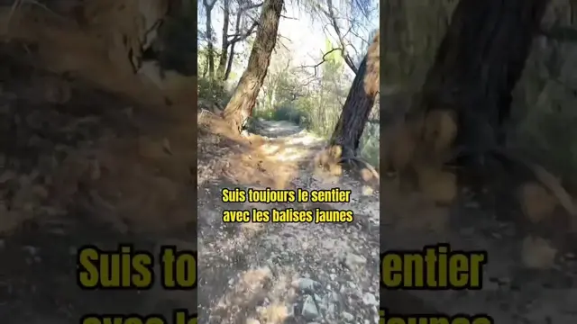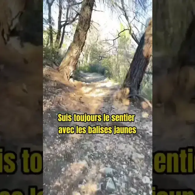 5- Au croisement (panneau chemin de l’Ermitage) prendre à gauche, puis immédiatement à gauche pour quitter la piste forestière et descendre sur le petit sentier pendant 1,8 kilomètre. Suivre le sentier principal, passer devant une construction en ruine, passer entre les deux rochers puis poursuivre sur le sentier de gauche. Laisser le sentier qui part sur la droite pour prendre le chemin qui s’enfonce dans les genêts et rejoindre la route bitumée.