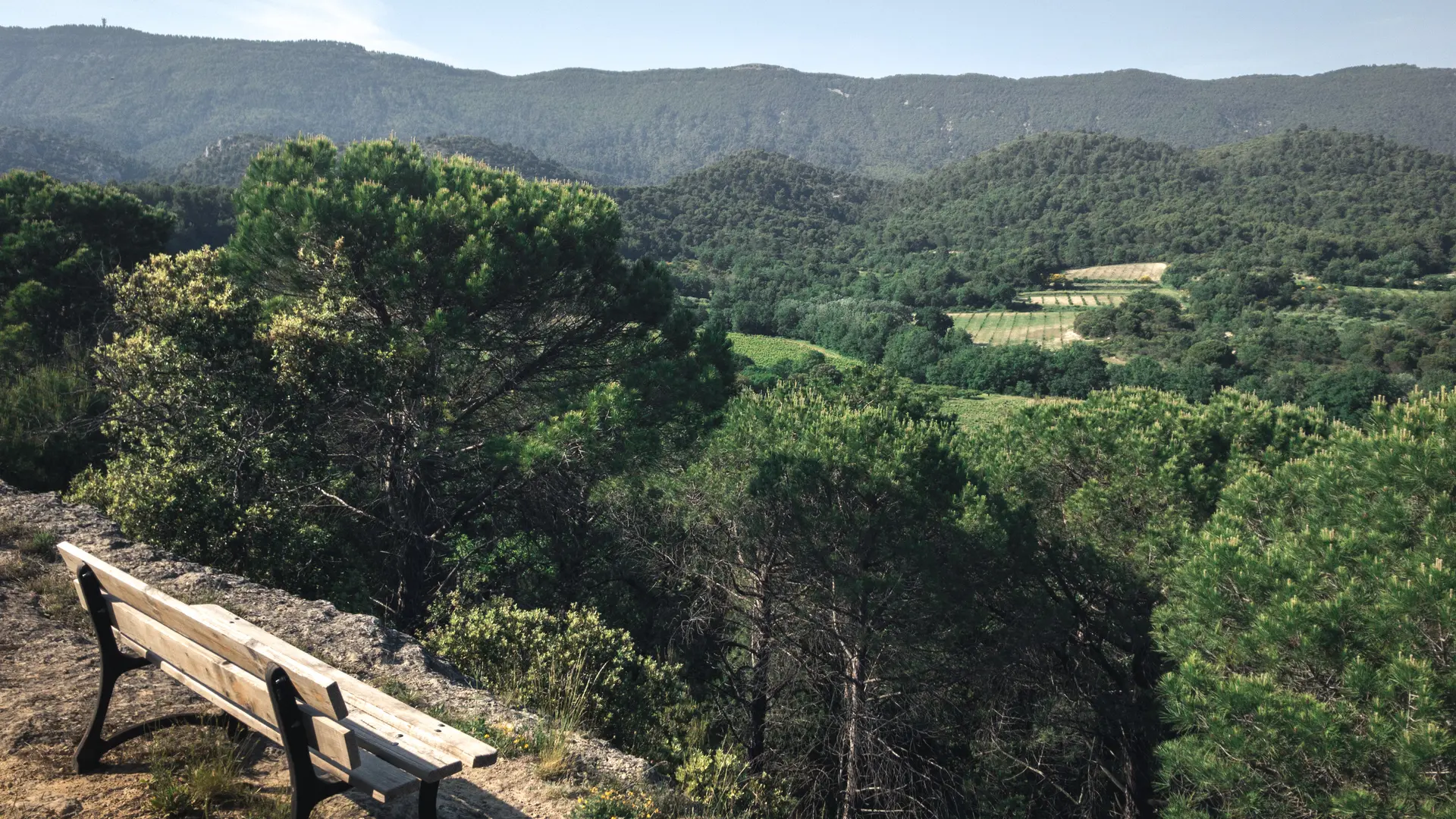 1 - Au carrefour "Le Couleron" (point 586), poursuivre à droite la piste (PR). Passer devant la bergerie du Jas de Pécou, dépasser le ravin du Loup, puis atteindre une citerne (point 609).