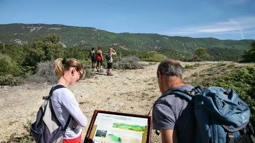 « Cabrières d'Aigues est un lieu favorable pour découvrir la géologie. Nous avons conçu le sentier géole afin de répondre à quelques questions simples : quelle est cette roche ? Quand et comment s'est-elle formée ? Quelle est l'origine des paysages ? Ici, le randonneur traverse plusieurs millions d'années, depuis l'océan de l'ère secondaire, à l'origine des calcaires du Grand Luberon, jusqu'à l'utilisation de ces mêmes calcaires par l'homme au XIXe s. ». Stéphane Legal, géologue du PNR Luberon.