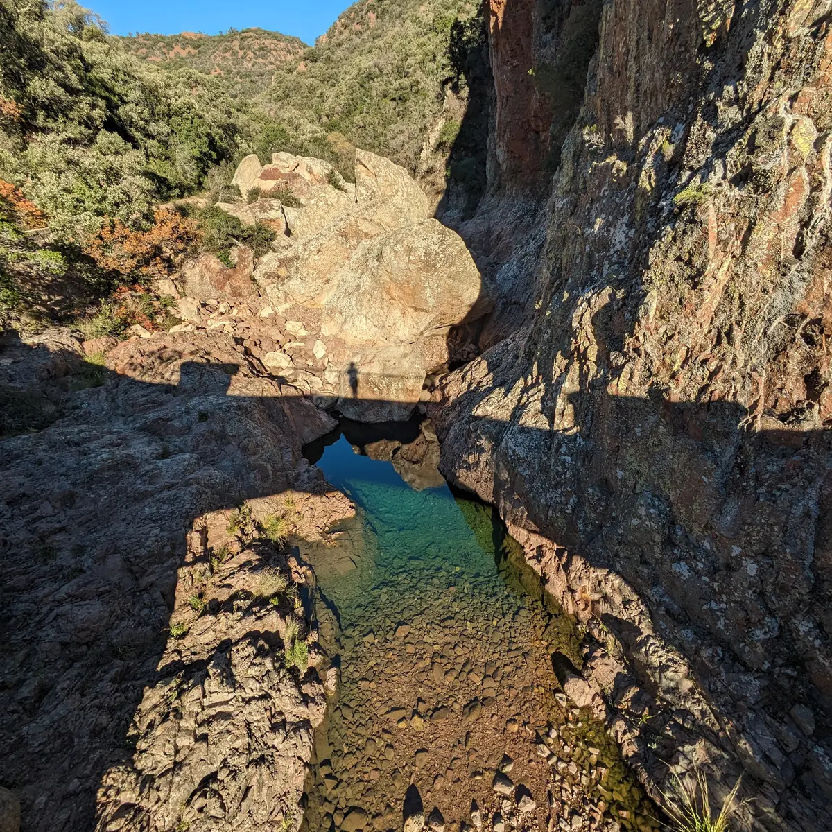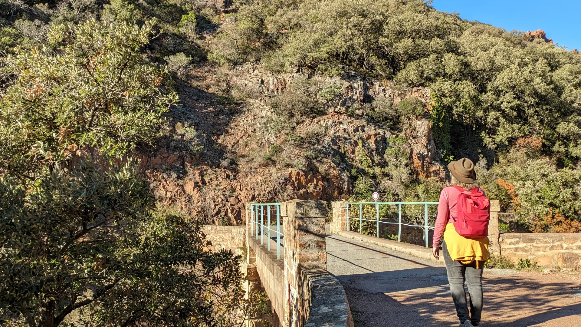 Après la barrière, continuez sur la route bitumée. Au rond-point du col du Mistral, prenez sur la gauche la route forestière qui descend. La route descend jusqu’au pont du Perthus où coule une jolie rivière. et vous pourrez admirer l'eau se jeter dans des magnifiques vasques.