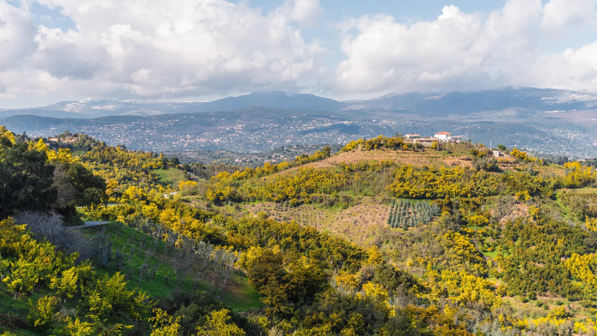 Rejoindre les crêtes, avec une vue panoramique sur Grasse et les villages perchés de St Cézaire, St Vallier de Thiey.