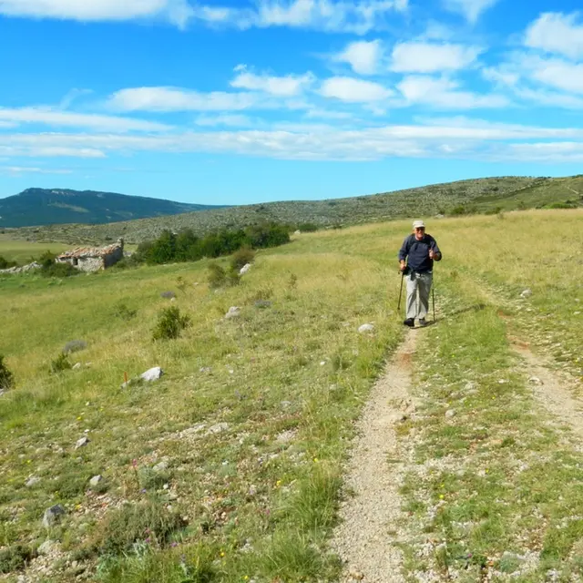 Suivre la D17 en direction de Rougon et après 120m prendre le sentier à droite pour rejoindre le village. 1 - Prendre à gauche et suivre l’itinéraire balisé en blanc et rouge (GR®4) longer les maisons et grimper le long de murets en pierres sèches. Passer devant un réservoir d’eau, traverser un chemin et continuer à monter par un petit sentier. Après l’oratoire St Antoine suivre l’itinéraire, pendant environ 2 km, le chemin d’accès au plateau de Suech. 2 - Le chemin débouche à l’entrée du plateau de Suech. A 100 m, intersection entre les chemins de Blieux et de Castellane, suivre à droite le GR® traverser le plateau en suivant approximativement les poteaux de la ligne électrique. 3 - En fin de traversée, s’en écarter et poursuivre sur la droite Juste avant les ruines d’une ancienne bergerie, continuer sur le GR®4 et suivre l’ancienne voie romaine en direction de Chasteuil. 4 – Tourner à droite quitter le GR®4 et suivre la route C2 qui descend vers la vallée du Verdon pendant 2,5km. 5 – En arrivant sur la D952 tourner à droite et continuer le long de la D952 jusqu’à hauteur du camping et l’arrêt de bus sur la droite (150m). Attention route dangereuse, rester sur la gauche pour voir les véhicules arrivés en face.