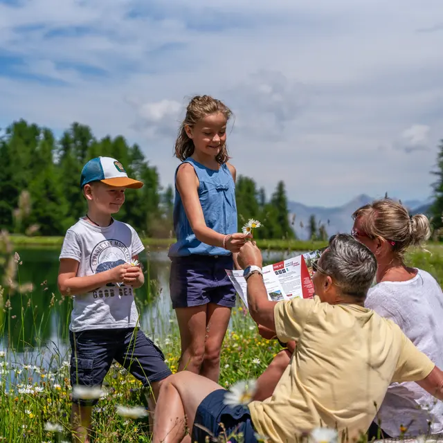 Au lac de Peyrol, rejoignez le départ du sentier situé en dessous de la gare d’arrivée du télésiège de Sainte-Marie ouvert en hiver. Le sentier suit la lisière de la forêt avant de s’enfoncer à l’intérieur sous les mélèzes.